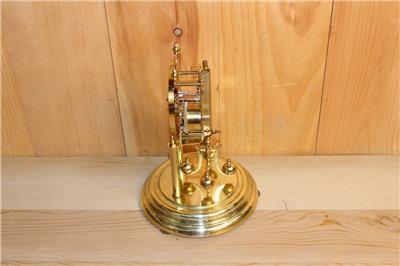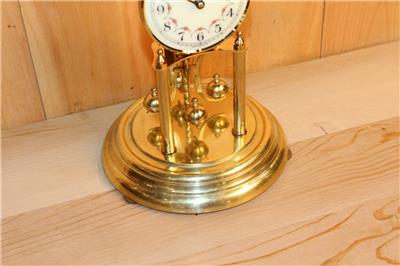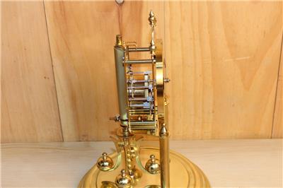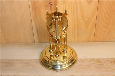 The brass looks to be in good overall condition and is a little less tarnished than usual. There is a very minor ¼" hairline crack on the right side bottom edge of the base. This model has the locking pendulum which makes shipping and set up fairly easy.