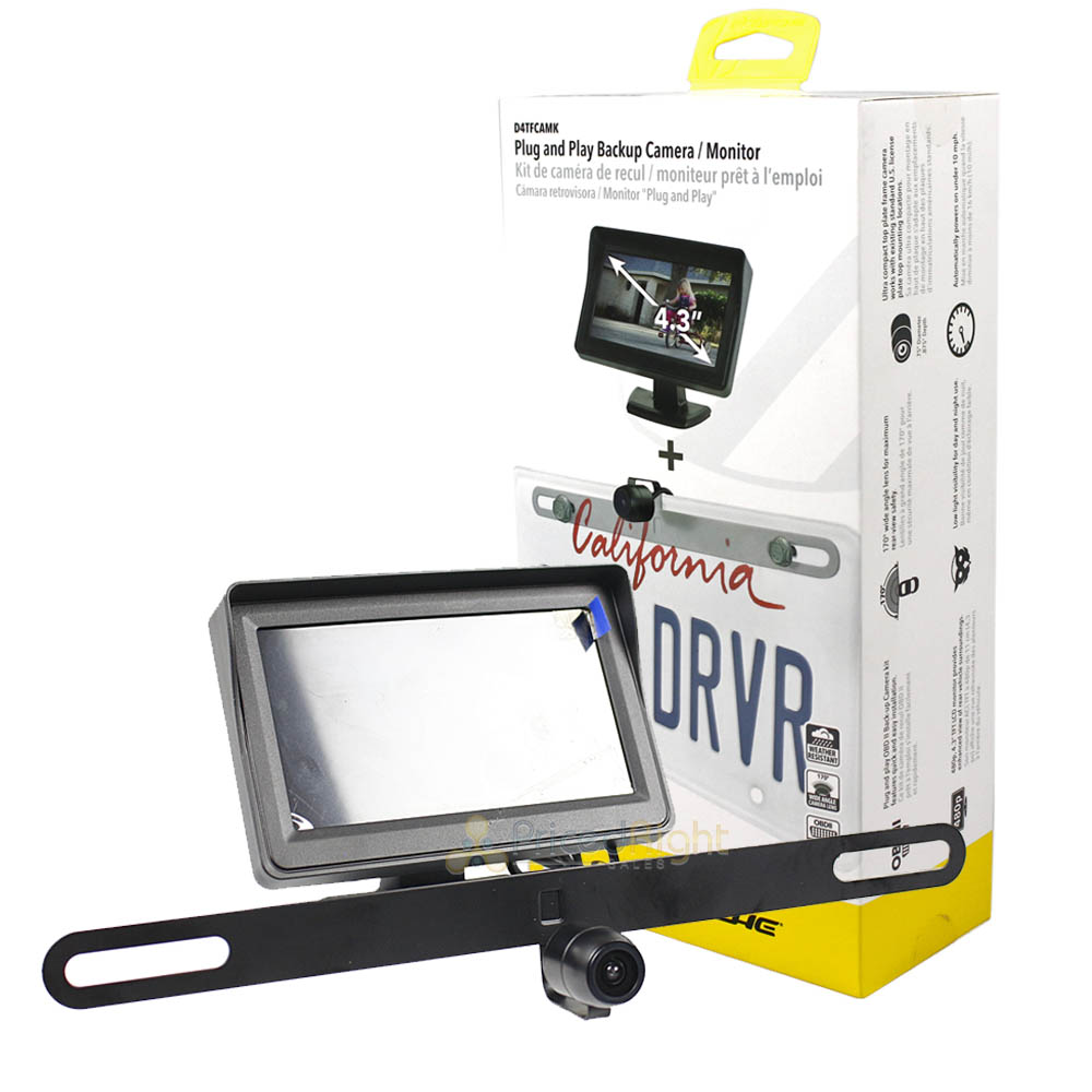 • Included in the package: (1) 4.3 inch TFT monitor with mounting pad (1) OBD-II Y-splitter cable (1) license plate mounting camera (1) installation/user manual (Spanish language not guaranteed )