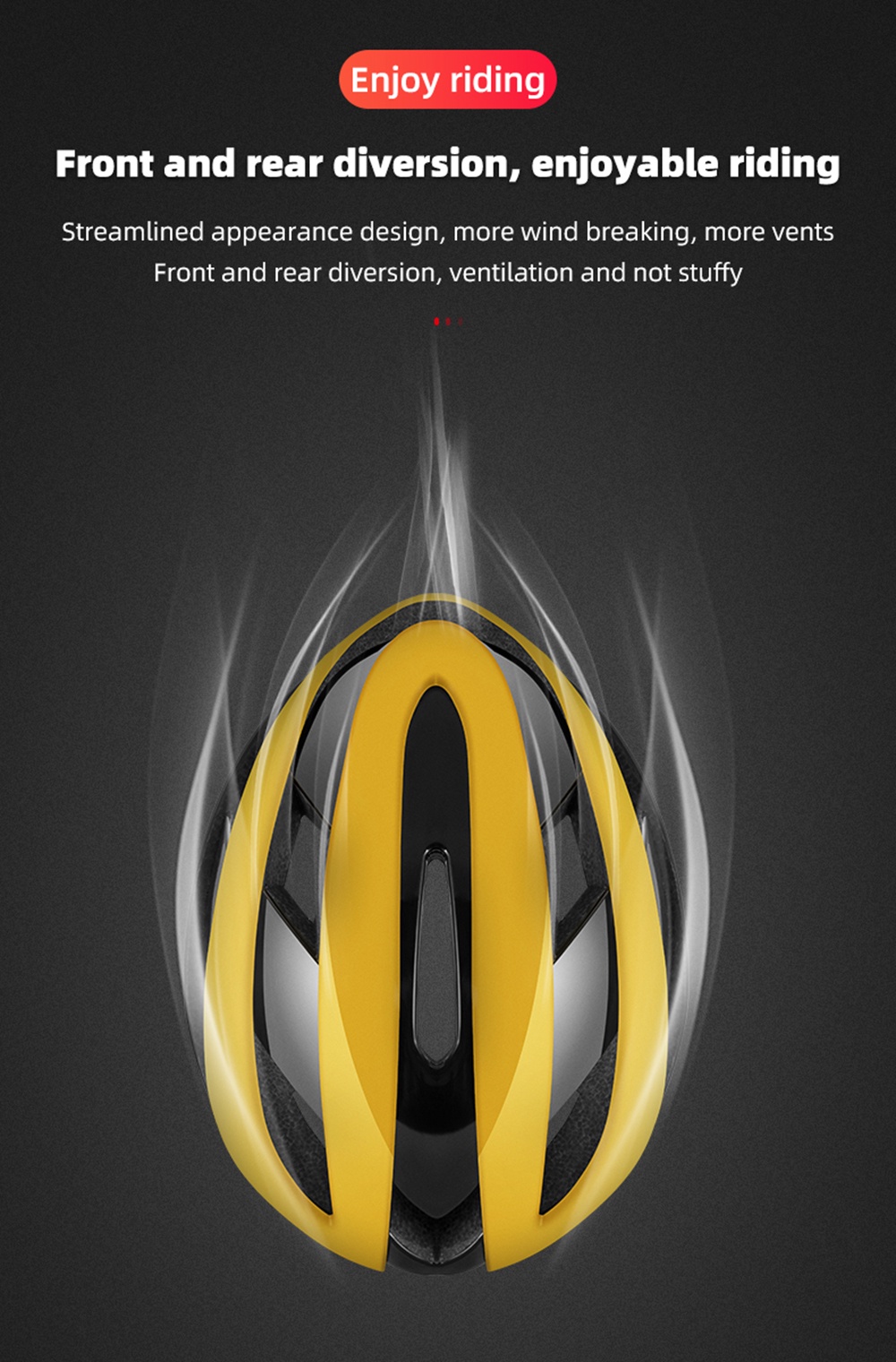 Brand: ROCKBROS Product Name: Bicycle Helmet Lucien Buysse Material: PC shell + EPS foam Head circumference: M (55-58cm) L (58-61cm) Color: black and yellow/pink blue/white blue/black and white Weight: about 250g Features: 1. The streamlined integrated design makes it more comfortable to ride in the wind. 2. Fit to the curve of the head, which can be adjusted to fit better. 3. The streamlined integrated design, with 18 large ventilation holes, makes riding comfortable and not stuffy. 4. The PC shell has an integrated edge, which is more concise and beautiful, and is comfortable to wear. 5. The streamlined appearance design, breaks the wind, and has more vents. Front and rear diversion, ventilation and ventilation are not stuffy and hot. 6. The protective lining can be cleaned and replaced and is comfortable to wear. 7. It can be adjusted freely according to the size of the head, safe and comfortable.