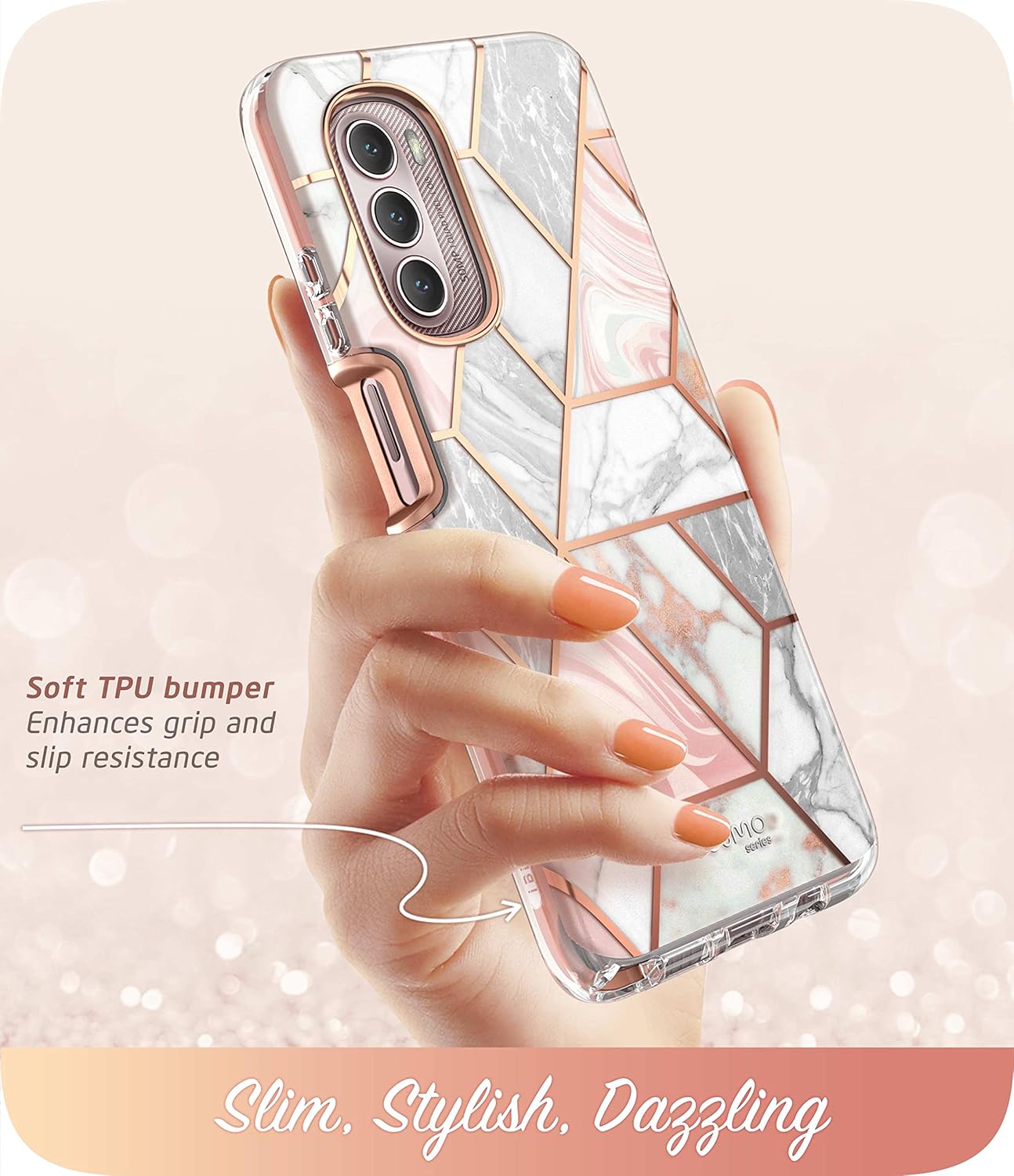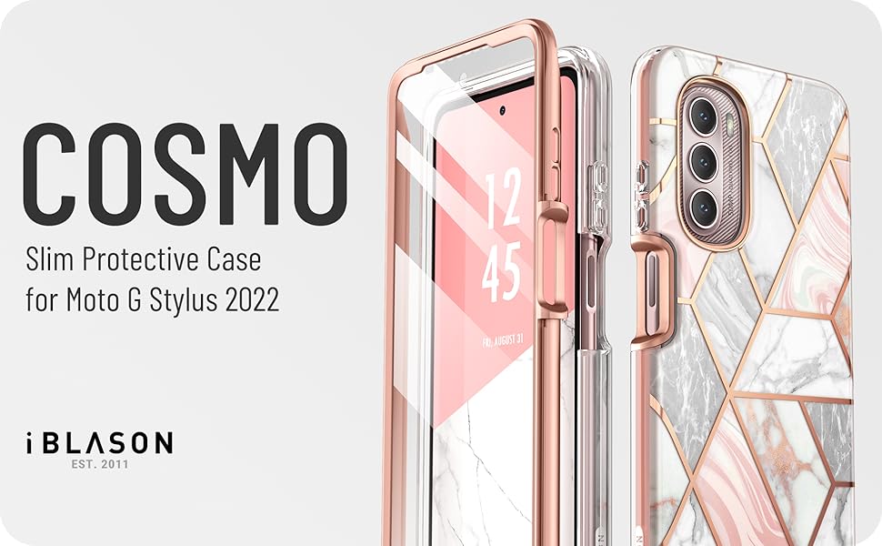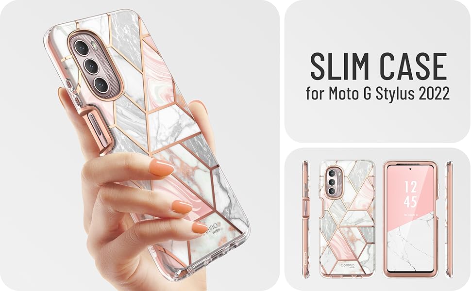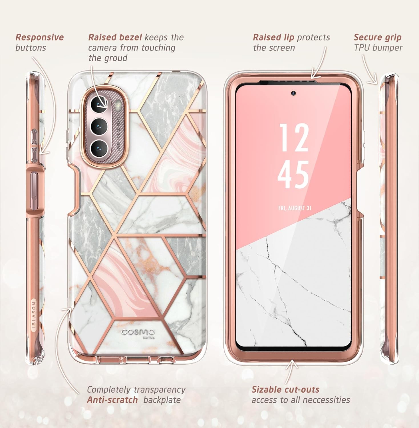 i-Blason Cosmo for Moto G Stylus 5G Case (2022) [Not for 4G Version& 2020/2021 Version] Slim Full-Body Stylish Protective Phone Case for Moto G Stylus 5G with Built-in Screen Protector, Marble Pink