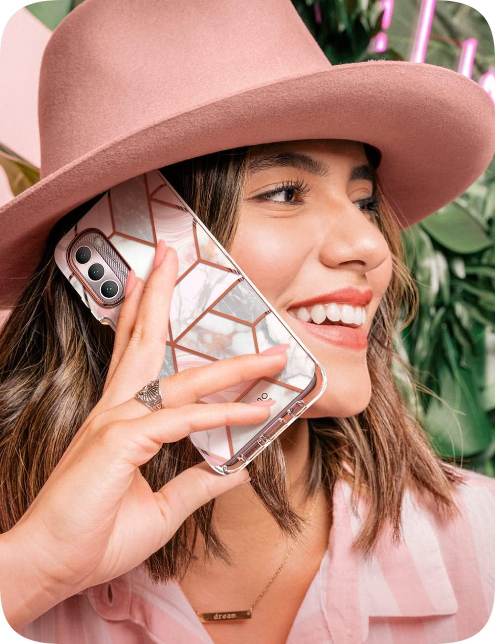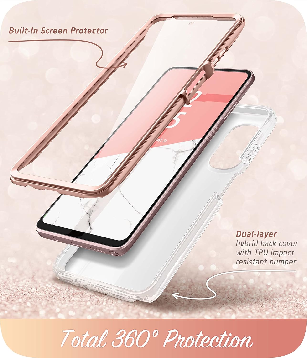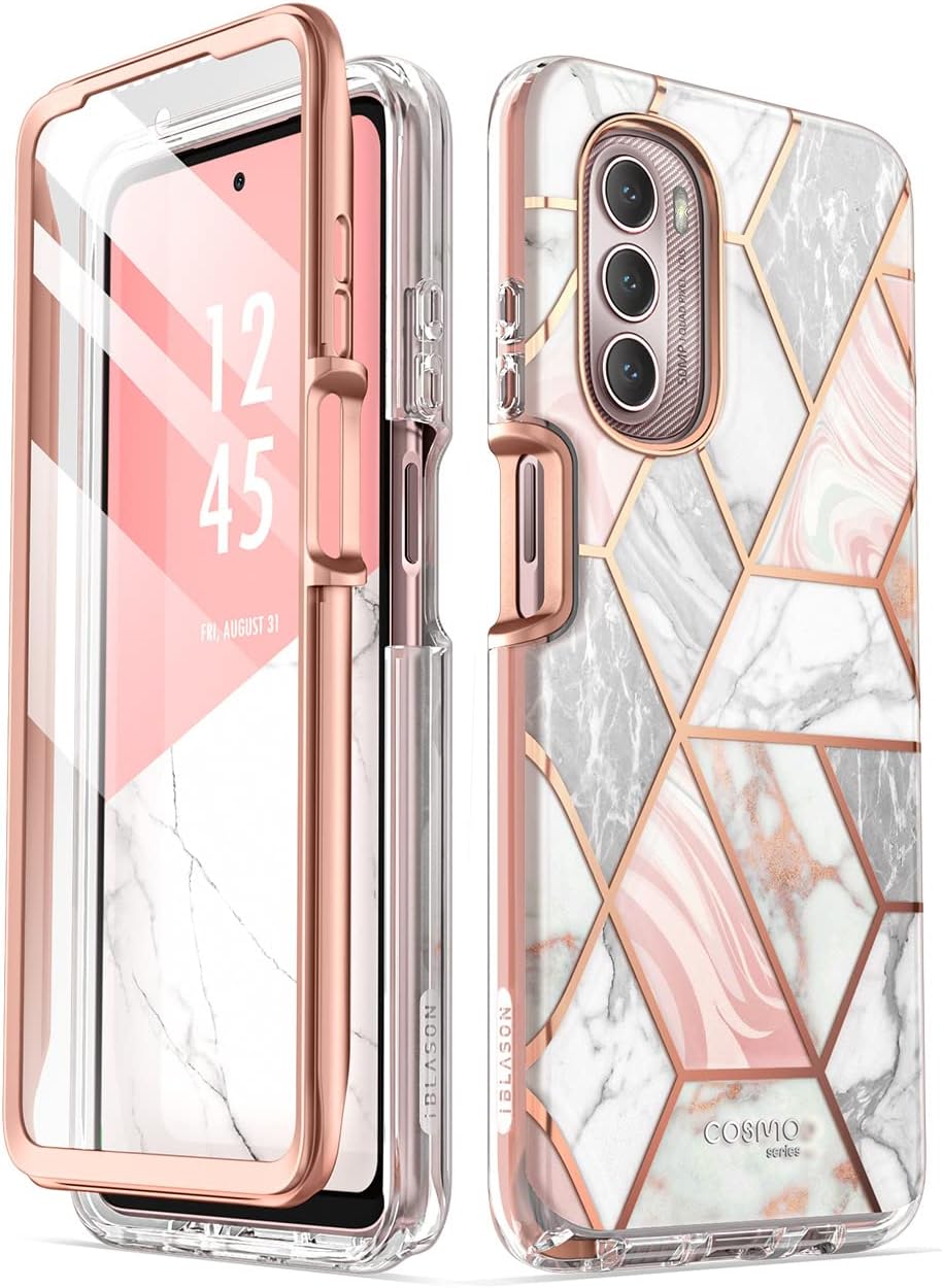 i-Blason Cosmo for Moto G Stylus 5G Case (2022) [Not for 4G Version& 2020/2021 Version] Slim Full-Body Stylish Protective Phone Case for Moto G Stylus 5G with Built-in Screen Protector, Marble Pink