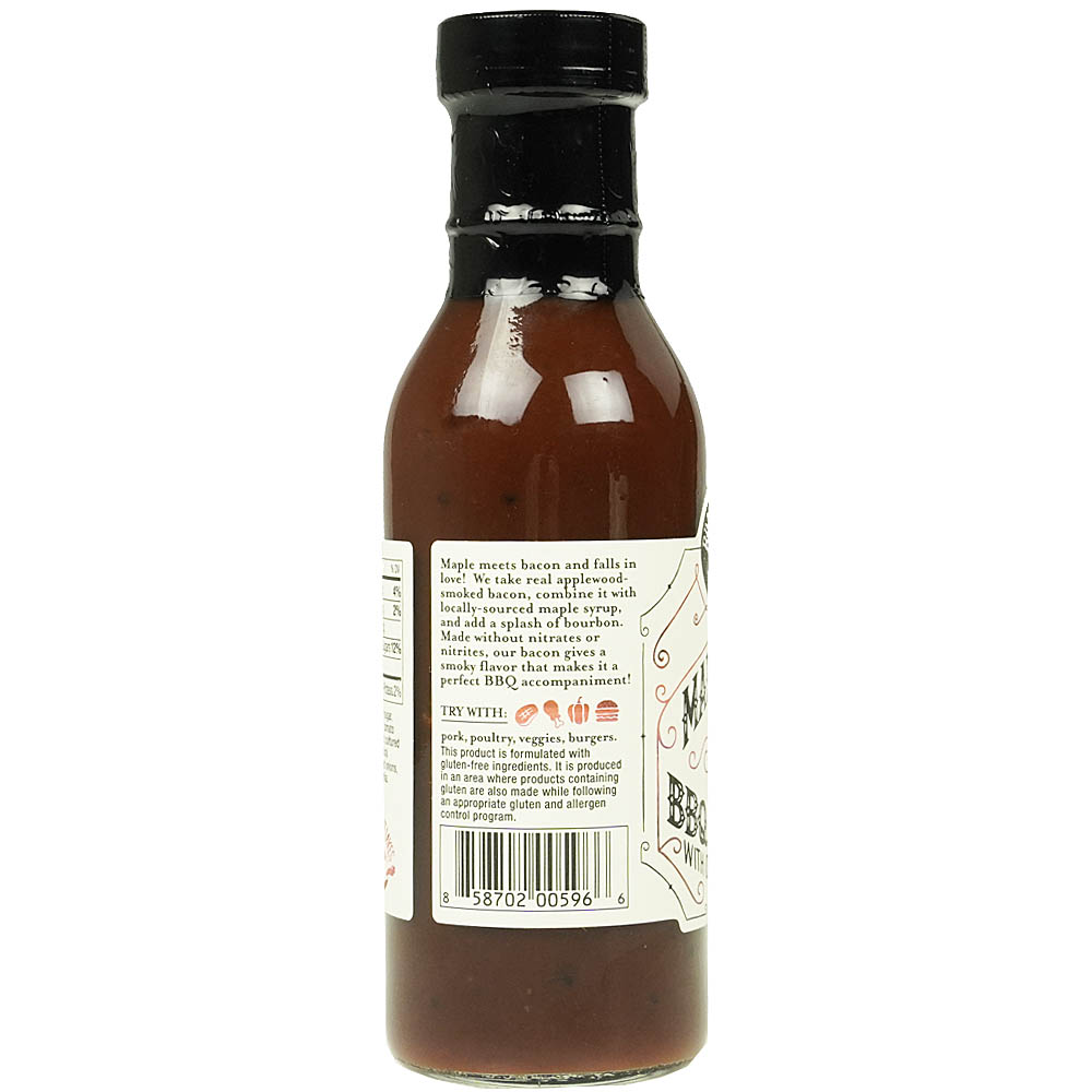 Maple meets bacon and falls in love! Made with real applewood-smoked bacon, combine it with locally-sourced maple syrup, and add a splash of bourbon. Made without nitrates or nitrites, the bacon gives a smoky flavor that makes it a perfect BBQ accompaniment!