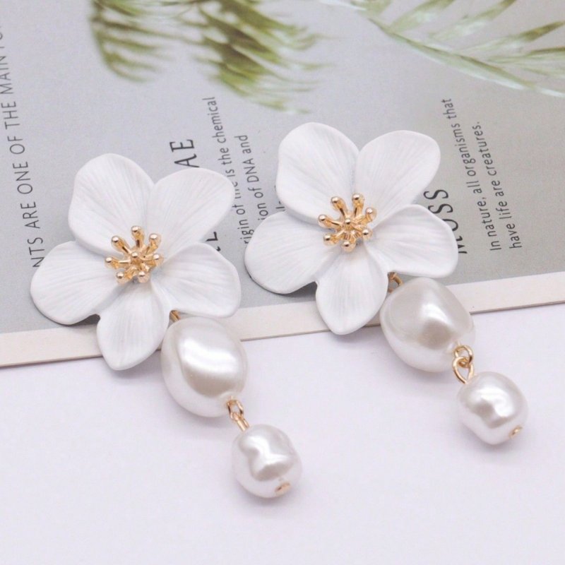 Fashion Elegant Pearl Flower Drop Dangle Earrings Stud Women Lucky Jewelry Gift
