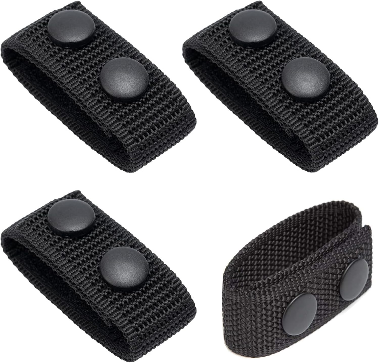 Professional-Grade Belt Keepers for Tactical ExcellenceUpgrade your duty belt setup with our 4-PCS Heavy-Duty Nylon Belt Keepers, engineered to meet the rigorous demands of law enforcement and security professionals. Crafted from abrasion-resistant nylon and featuring double-snap closures, these belt retainers provide unmatched durability. Whether you’re on patrol, in the field, or managing security operations, these keepers ensure your gear stays firmly anchored—no more shifting or slippage. Key Features:Reinforced Design: Double-stitched seams and rust-proof snaps withstand extreme conditions,from harsh weather to heavy equipment loads.Streamlined Functionality: Slim profile avoids bulk while maintaining a professional appearance, ideal for daily wear or tactical Choose Us?As a trusted name in law enforcement gear, we prioritize quality and functionality. Our belt keepers are rigorously tested to ensure they meet the highest standards of reliability, making them the go-to choice for security teams, police departments, and outdoor adventurers.Package Includes:4 x Black Nylon Duty Belt Keepers (Double Snaps)