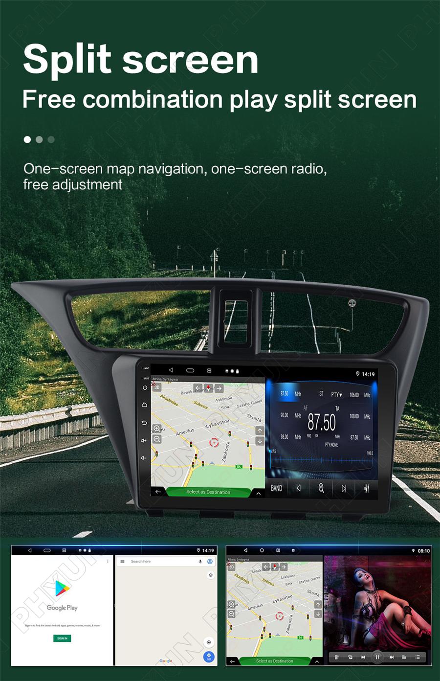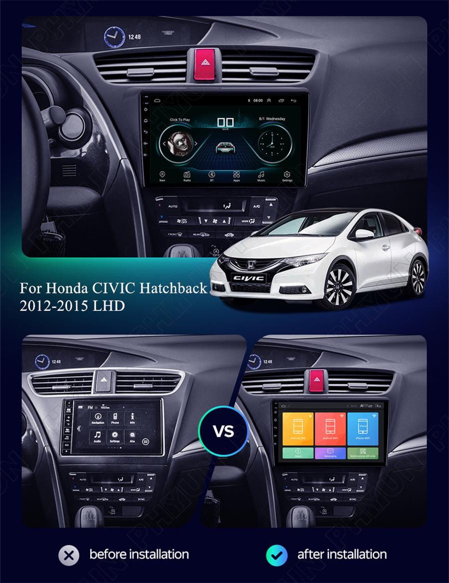 For 2012-2015 Honda Civic Hatchback LHD Stereo Radio FM 9"Android 10.1 Head Unit