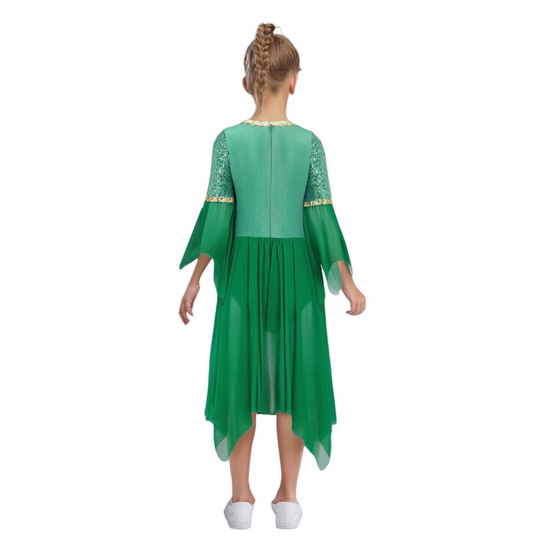 A fairy costume for girls, is designed with square neck, 3/4 sleeve, high waist dress with built-in underwear .