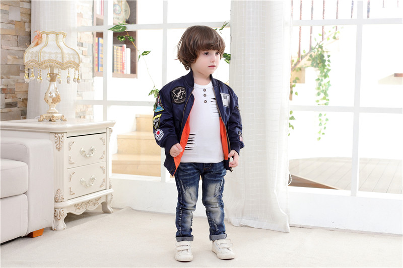 Hot Unisex Children Pilot Jacket Embroidered Baseball Coat Outdoor Windproof