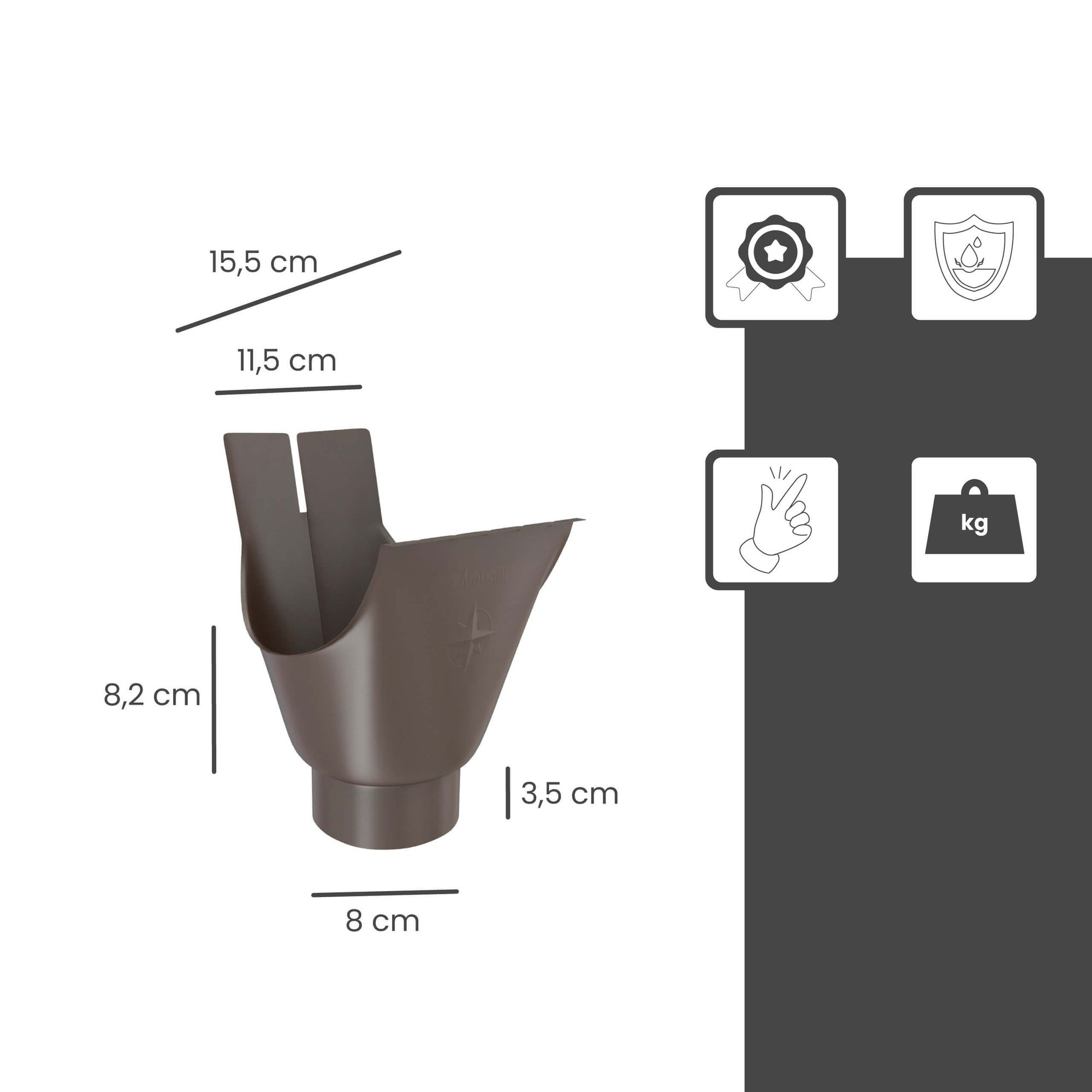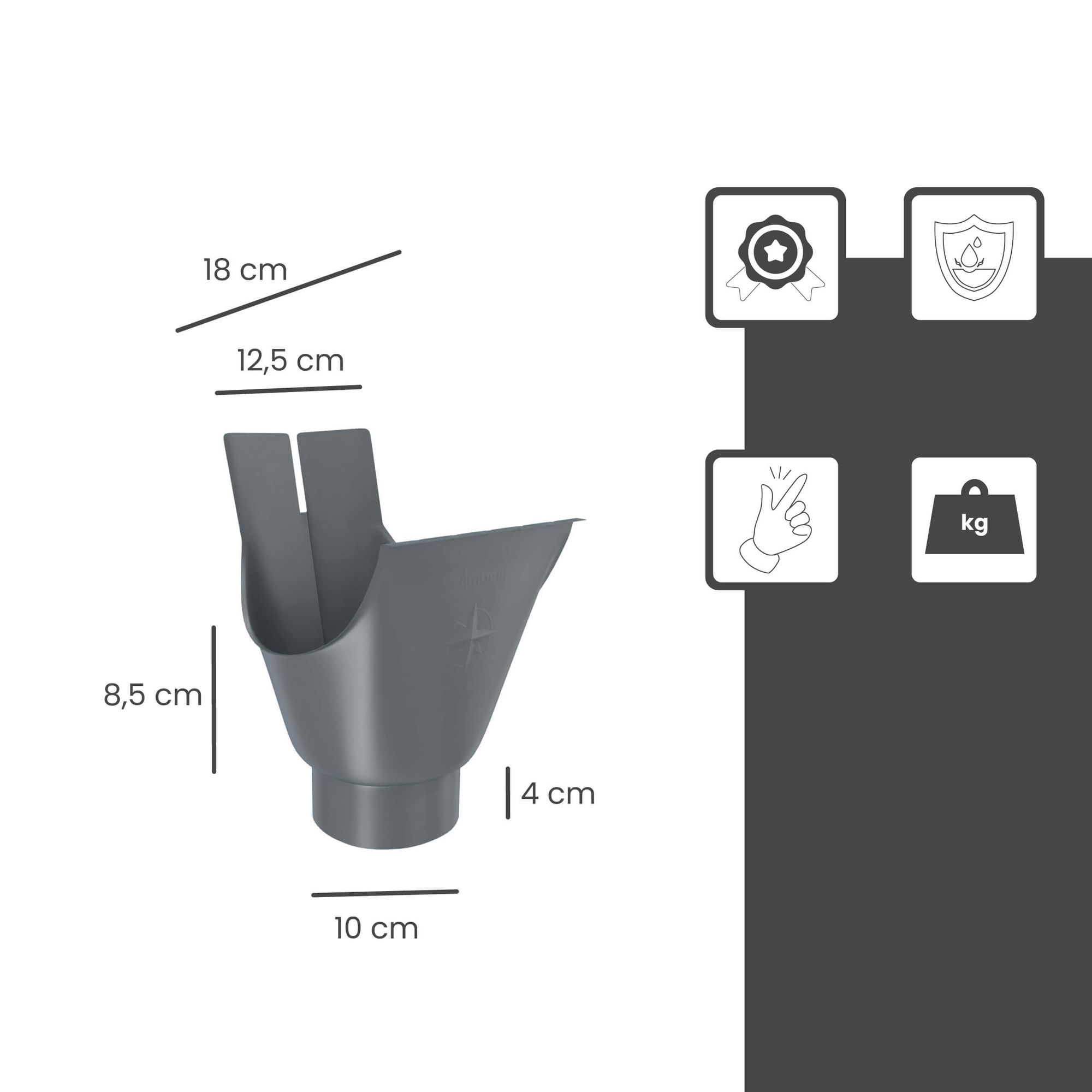 Il raccordo ovale di drenaggio Zambelli è l'elemento di collegamento ideale tra la grondaia semicircolare e il pluviale, che consente di drenare l'acqua piovana in modo affidabile e sicuro. Realizzato in acciaio zincato di alta qualità, il raccordo è estremamente forte, resistente alla corrosione e robusto contro i carichi di vento e neve. Noto per la sua lunga durata, il bocchettone di drenaggio è facile da installare e garantisce un drenaggio professionale del tetto, sia che si tratti di una casa, di un carport o di un capanno da giardino.