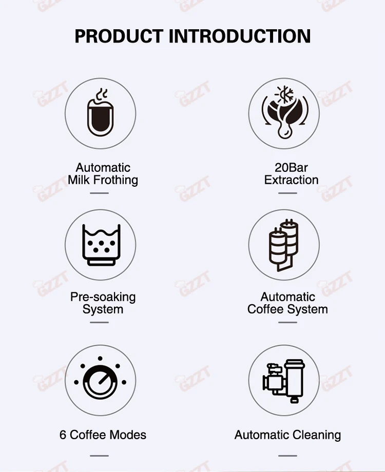 GZZT JY500 3 in 1 Semi Automatic Espresso Coffee Machine Cappuccino Milk System 6 Coffee Modes Automatic Milk Froth Coffee Maker