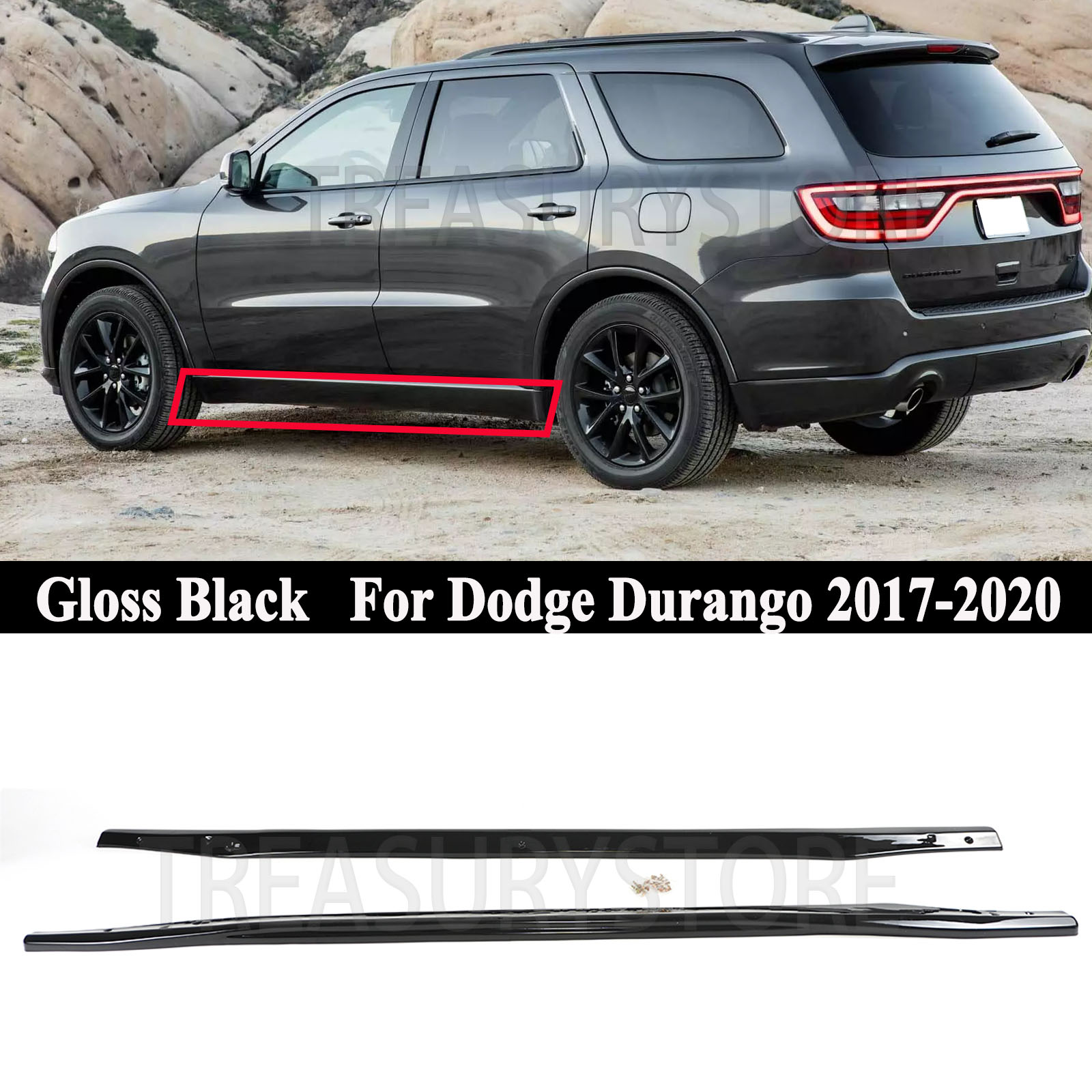 For Dodge Durango GT SRT 17-2025 Gloss Black V1 Style Side Skirt Extension Lip