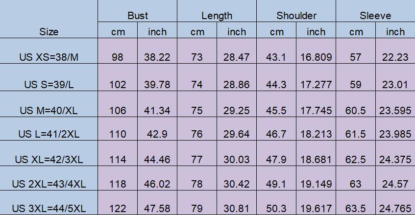 * Size: Asia 38-44