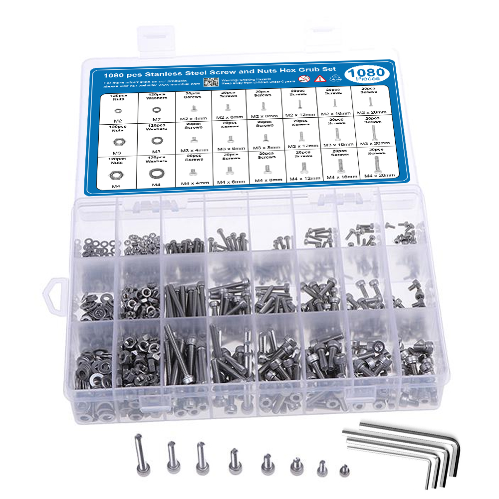 - Paketinhalt: M2x4mm 20pcs M2x6mm 20pcs M2x8mm 20pcs M2x12mm 20pcs M2x16mm 20pcs M2x20mm 20pcs M3x4mm 20pcs M3x6mm 20pcs M3x8mm 20pcs M3x12mm 20pcs M3x16mm 20pcs M3x20mm 20pcs M4x4mm 20pcs M4x6mm 20pcs M4x8mm 20pcd M4x12mm 20pcs M4x16mm 20pcs M4x20mm 20Pcs M2 Washers 120 pcs M2 Nuts 120 pcs M3 Washers 120 pcs M3 Nuts 120 pcs M4 Washers 120 pcs M4 Nuts 120 pcs
