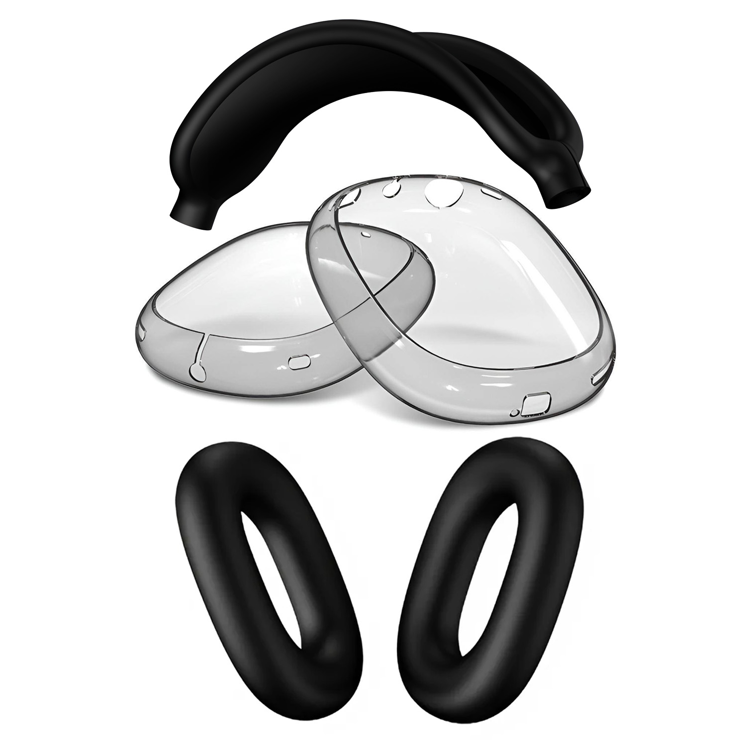 Silikon-Schutzhülle für AirPods Max Kopfhörer von MMOBIEL - Clear Soft TPU Ohrmuscheln Abdeckung, Silikon Ohrpolster Hülle, Kopfbandabdeckung - Anti-Kratz weicher Silikonschutz – Schwarz