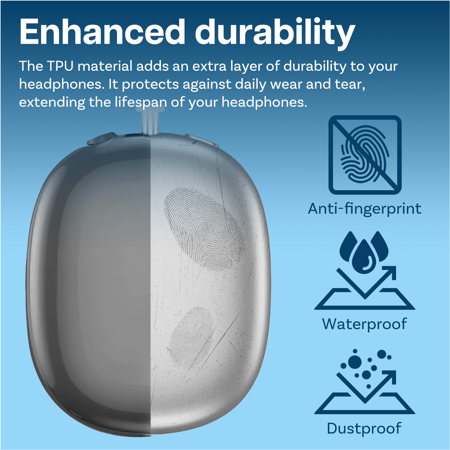 Dieses 3-in-1- Set von Hüllen ist kompatibel mit AirPods Max Kopfhörern. Schützen Sie Ihre Kopfhörer mit einem umfassenden Hüllenset, das durchsichtige, weiche TPU-Ohrmuschelabdeckungen, Silikonohrpolsterabdeckungen und eine Silikonkopfbandabdeckung umfasst. Präzise entworfen, um vor Kratzern, Schmutz und leichten Stößen zu schützen.