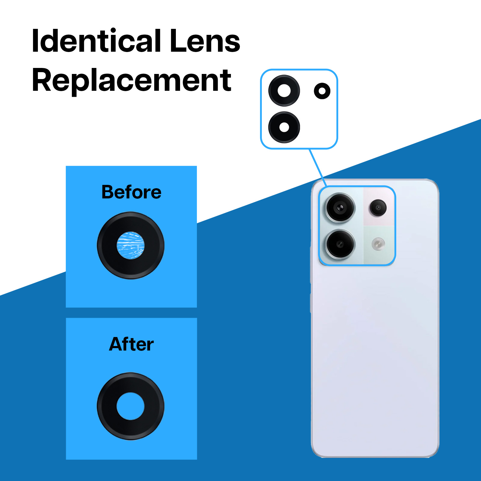 Kompatibel mit Xiaomi Redmi Note 13 Pro. Modellnummern: 2312DRA50C, 2312CRAD3C, 2312DRA50G, 2312DRA50I - Hinten Rückseite Camera Scheibe - Inkl. Kleber, Pinzette und Tuch.