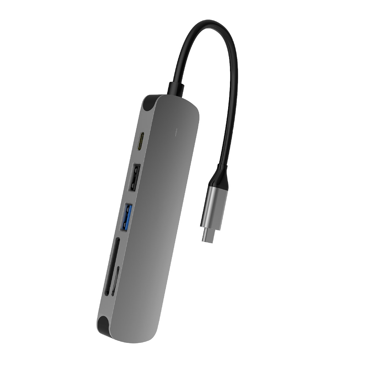 Der USB-C-Anschluss des 6-in-1-Datenhubs ist mit der Power Delivery 3.0-Technologie ausgestattet. Diese Technologie ermöglicht es dem Typ-C-Anschluss, eine hohe Wattleistung (60 W) an und von angeschlossenen Geräten zu liefern und zu empfangen. Geräte, die Power Delivery 3.0 nicht unterstützen, können ebenfalls angeschlossen werden, die Leistungsübertragung ist dann jedoch reduziert.