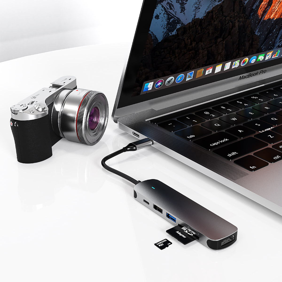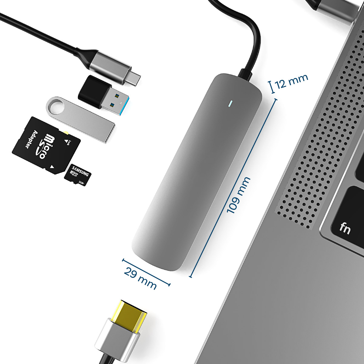 Hat Ihr Laptop zu wenige USB-Anschlüsse? Dann ist dieser kompakte USB-C-Datenhub mit HDMI 4k, SD/TF-Kartenleser und USB-Anschlüssen genau das Richtige für Sie. Mit diesem Hub haben Sie alles, was Sie brauchen, um die Konnektivität Ihres USB-C-Geräts zu erweitern. Das macht den Multi-Port-Datenhub zu einem großartigen Begleiter für MacBook, iPad, Dell XPS, Samsung Galaxy, Chromebook, Remarkable 2, Lenovo, HP oder jedes andere USB-C-Gerät.