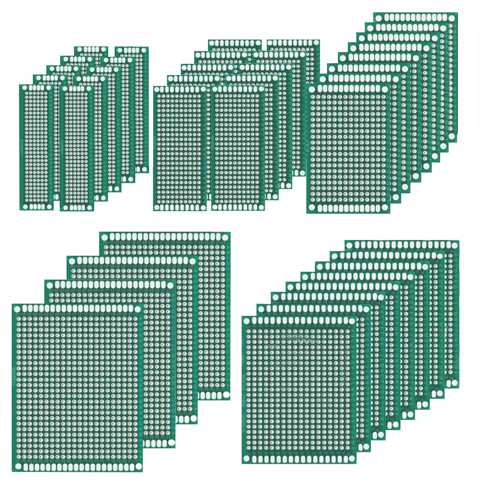 - Das Set enthält: 5 verschiedene Größen von PCB-Lochrastern, um Ihre Nachfrage zu erfüllen: 10 Stk. 8 x 2cm / 3.14 x 0.78 Zoll, 10 Stk. 7 x 3cm / 2.75 x 1.18 Zoll, 8 Stk. 6 x 4cm / 2.36 x 1.57 Zoll, 8Stk. 7 x 5cm / 2.75 x 1.95 Zoll, 4 Zoll 9 x 7cm / 3.54 x 2.75 Zoll, 1.5mm / 0.06 Zoll dick. Vorverzinnte und plattierte Löcher zur einfachen Installation von Sensoren und Komponenten. Der Abstand der Löcher beträgt 2,5 mm. Großartiges lötfreies Platinen-Kit für Ihre Raspberry Pi und Arduino Projekte