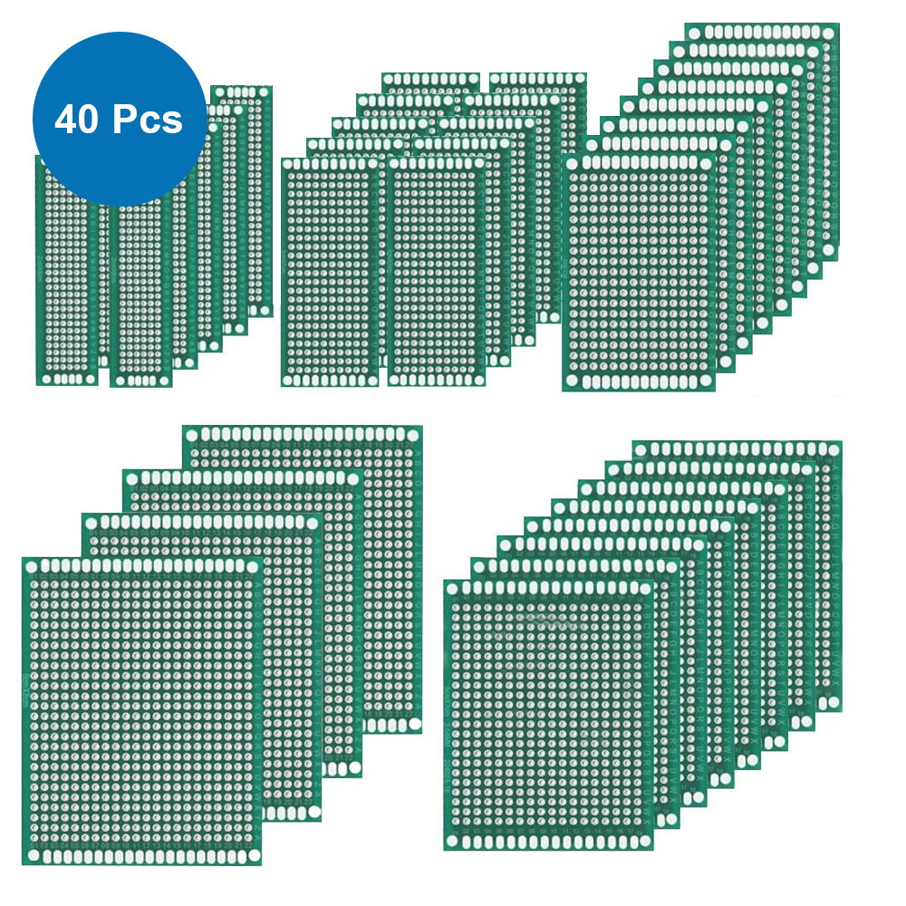 MMOBIEL 40 Stk. PCB-Lochraster Leiterplatten Doppelseitig Prototyp-Kit Universal-Set kompatibel mit Arduino Kits und mit elektronischen Projekten DIY.