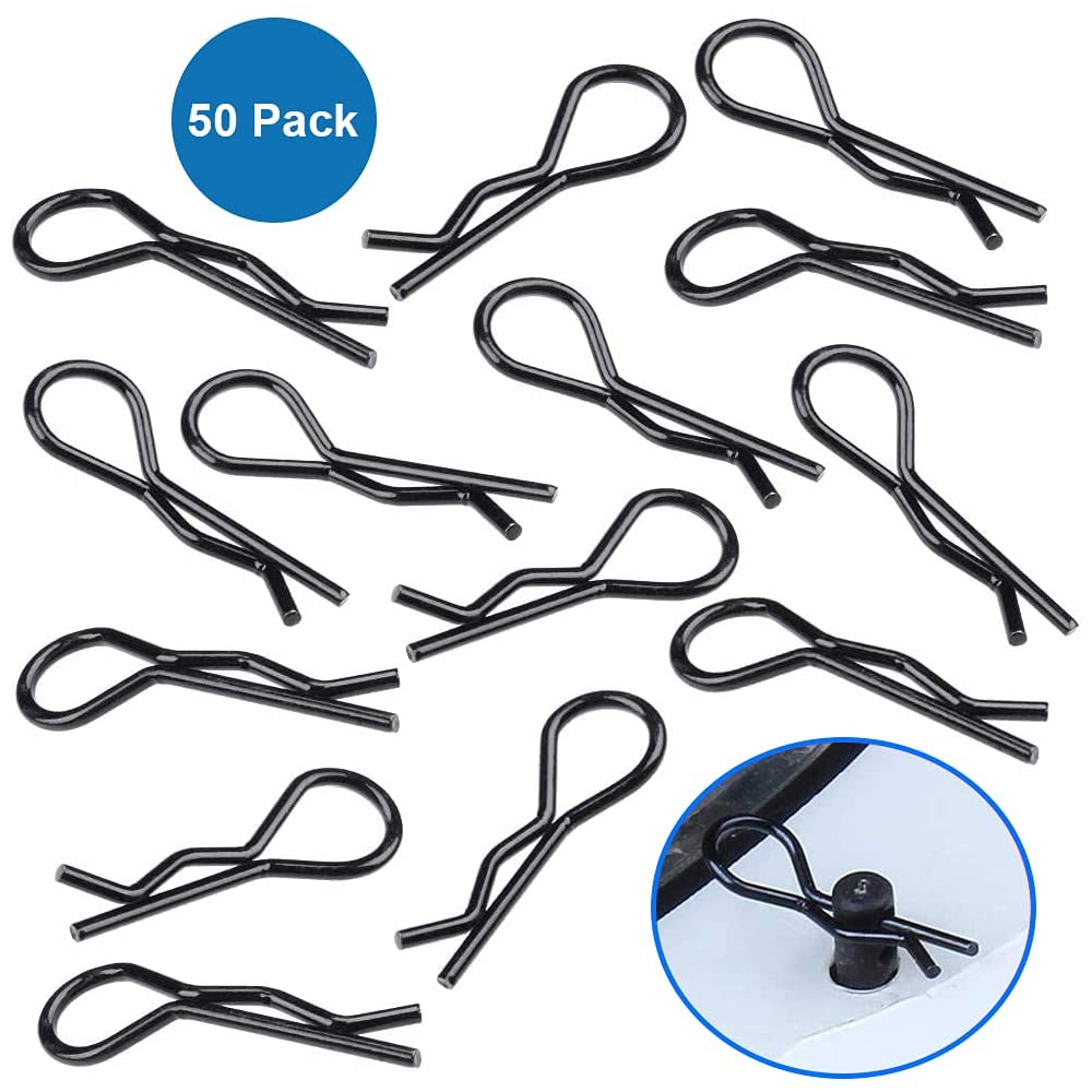 MMOBIEL Universal-RC-Body-Klemmen, flach, R-Pins für 1/10–1/12 Teile für RC Car / Offroad-Buggy / Truck-Verkleidung, schwarz, 50 St.