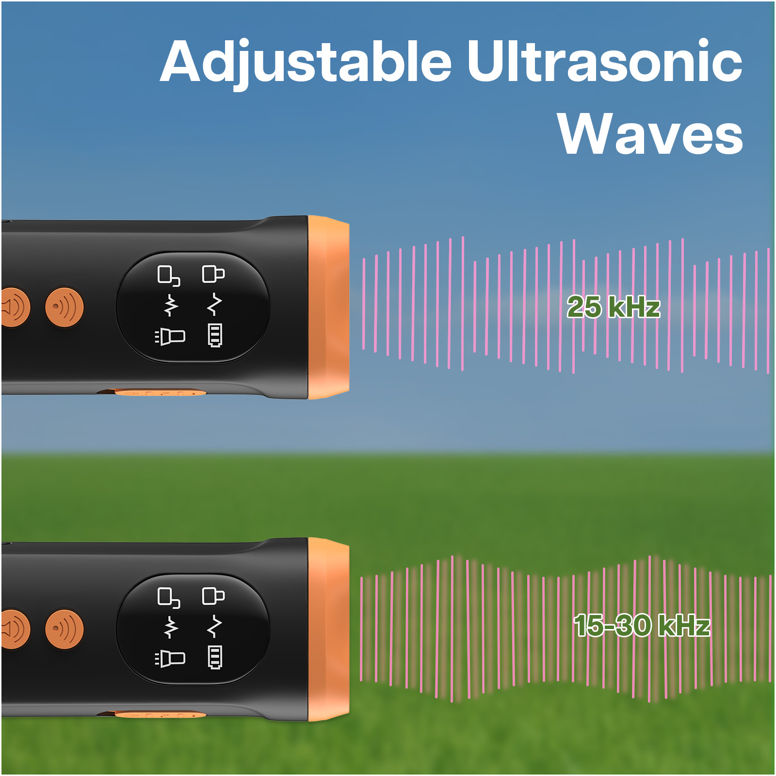 Dieses Gerät nutzt sichere, individuell anpassbare Ultraschallfrequenzen, um das Bellen zu reduzieren – ganz ohne Schmerzen oder Stromstöße. Wählen Sie zwischen Wellen- oder Dauerfrequenzmodus, um ein effektives Training für Hunde aller Größen zu ermöglichen – drinnen wie draußen – während Ihr Hund ruhig und ansprechbar bleibt.