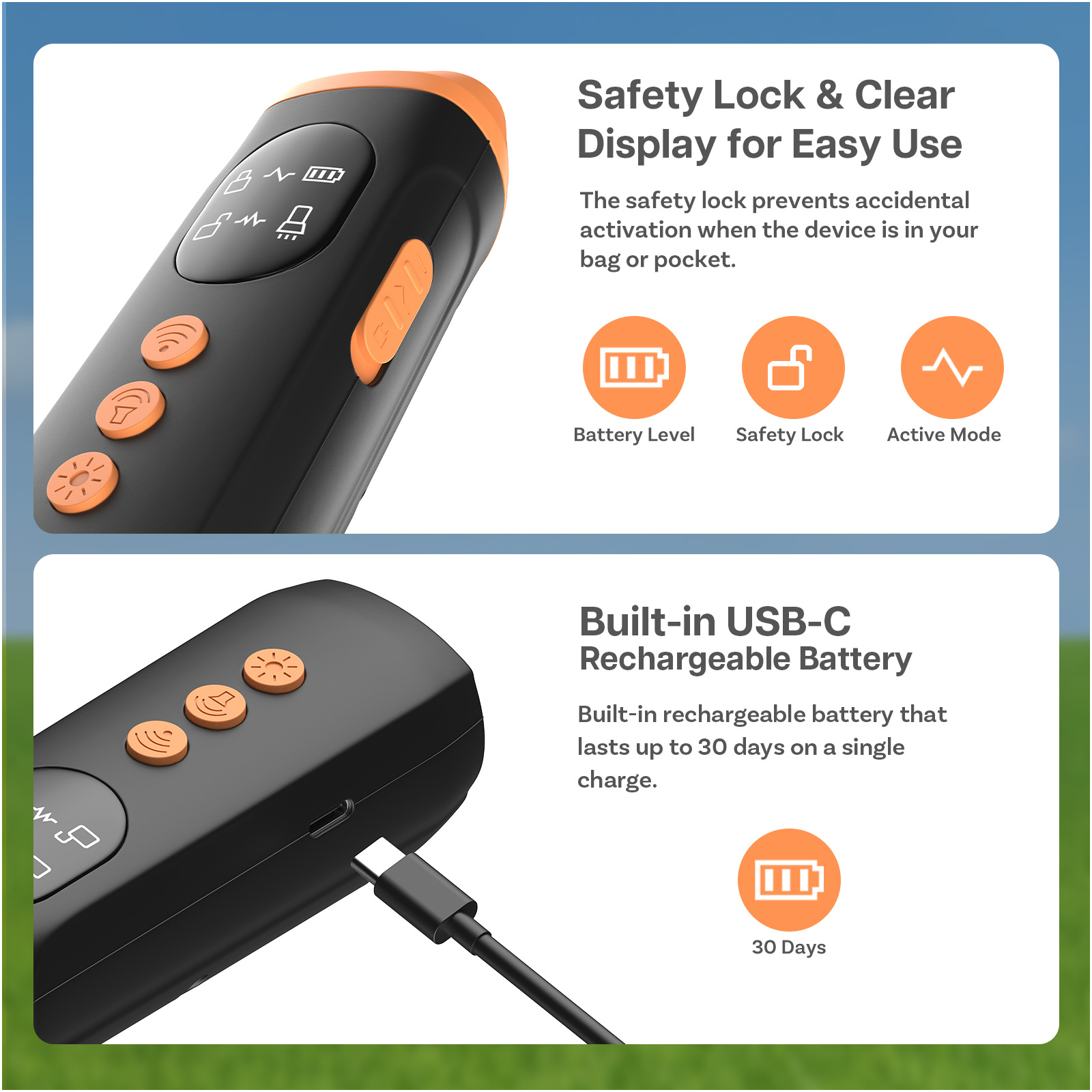 USB-C-Aufladung, Sicherheitssperre & Übersichtliches Display