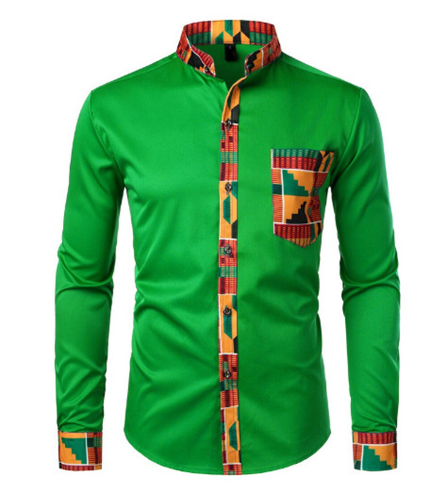 Men's African Dashiki Dress Shirt Long Sleeve Pullover Ethnic Party Shirts Tops