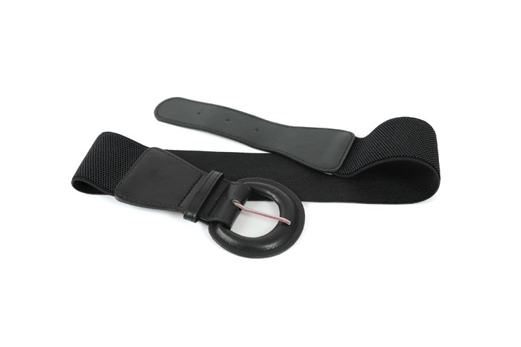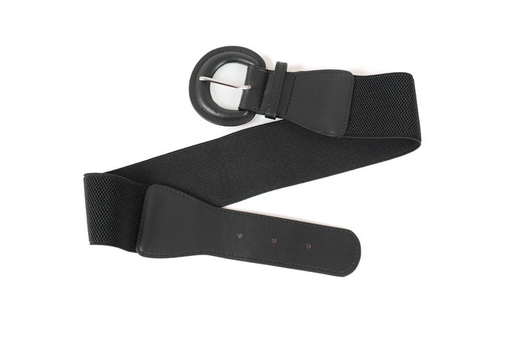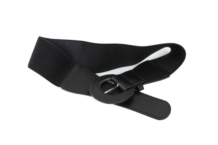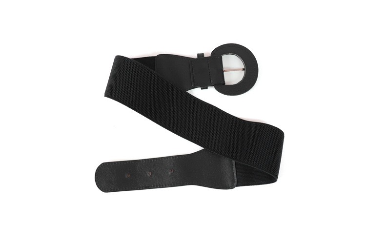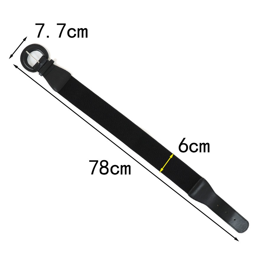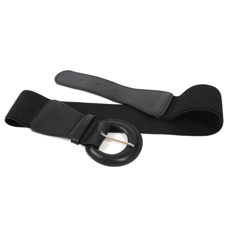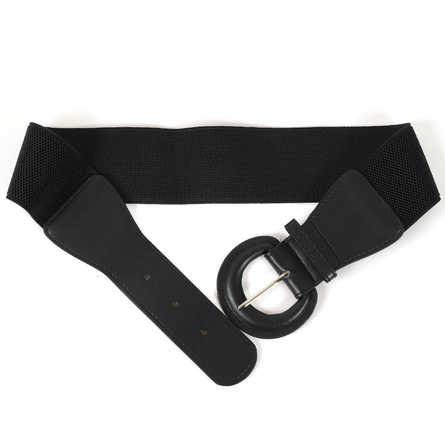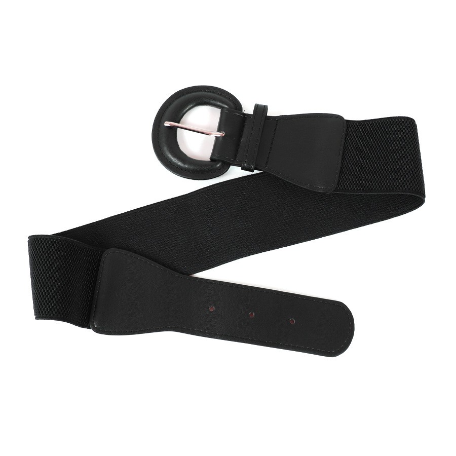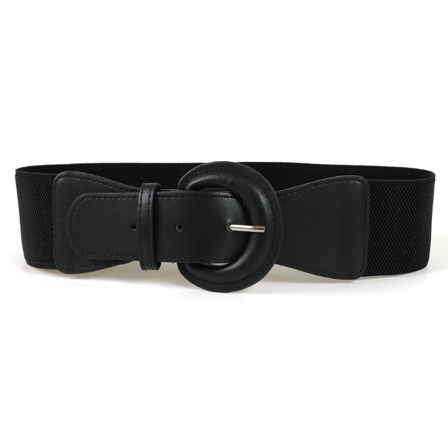 Women Retro Round Buckle Black Faux Leather Stretch Belt Corset Dress Waistband