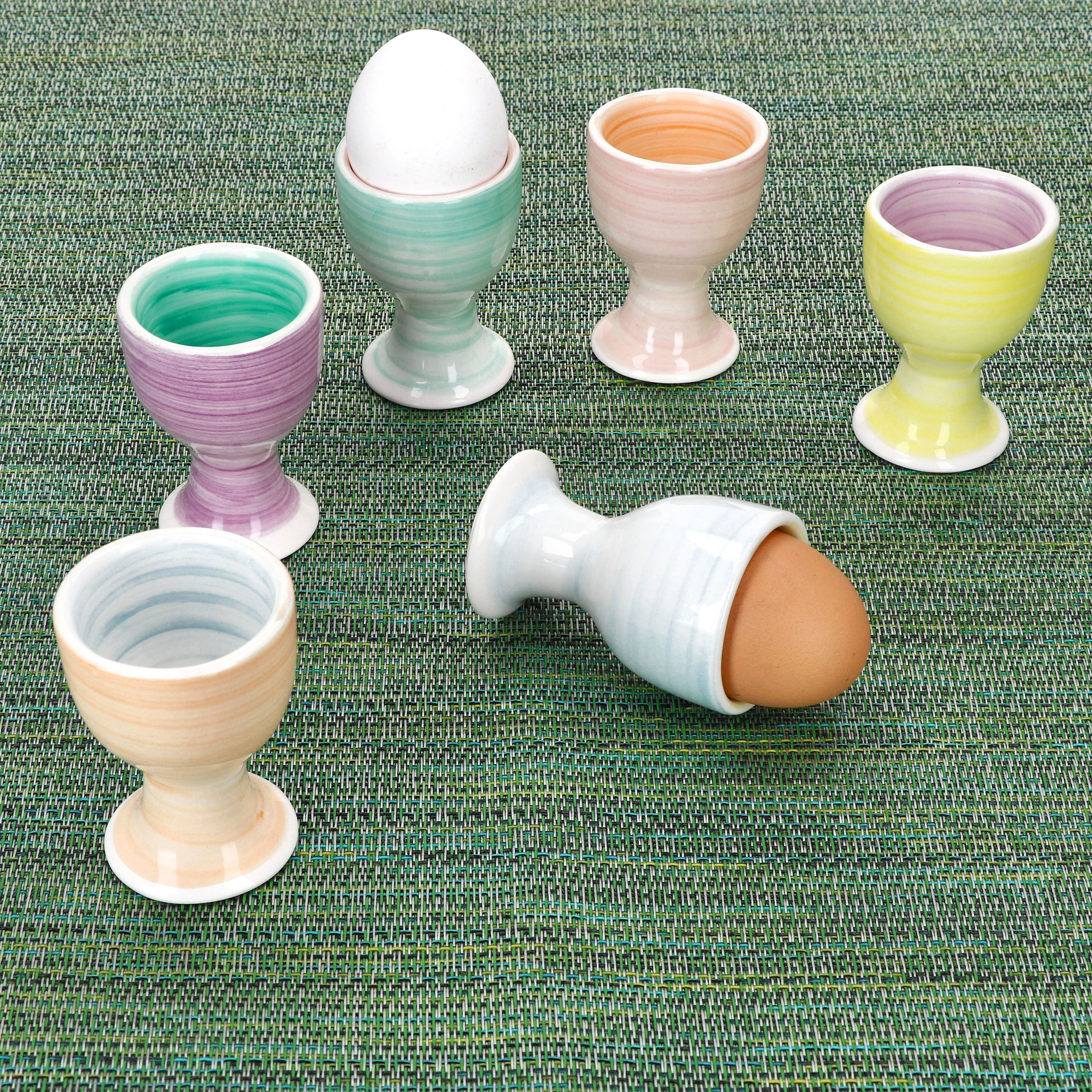 6er Set Eierbecher PASTELLO bunt für 6 Personen aus Steingut - 24326244