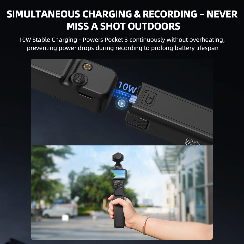 2.Simultaneous Charging & Recording – Never miss a shot outdoors