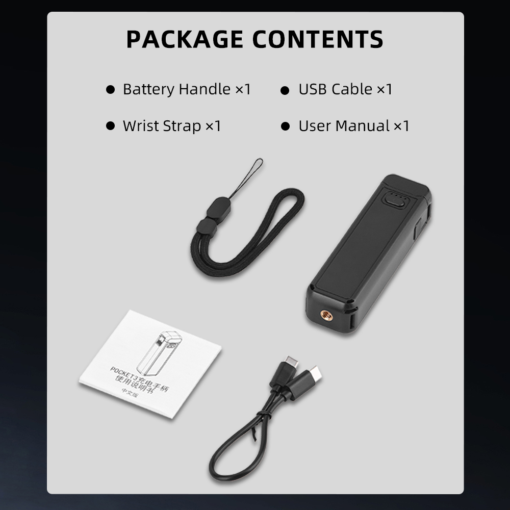Battery Handle ×1、Wrist Strap ×1、USB Cable ×1、User Manual ×1