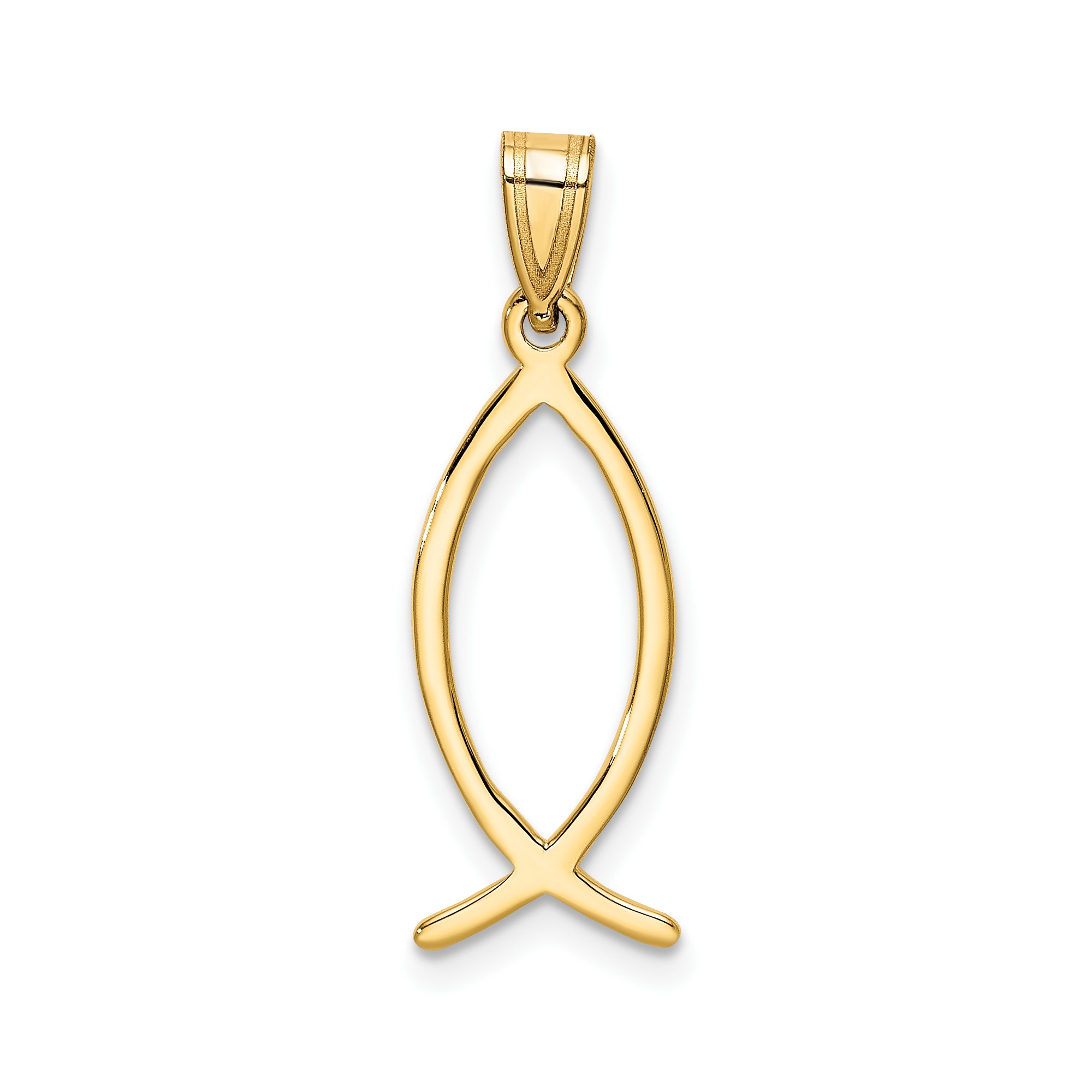 10k Yellow Gold Ichthys Fish Pendant Christian Religious Symbol for Women Unisex