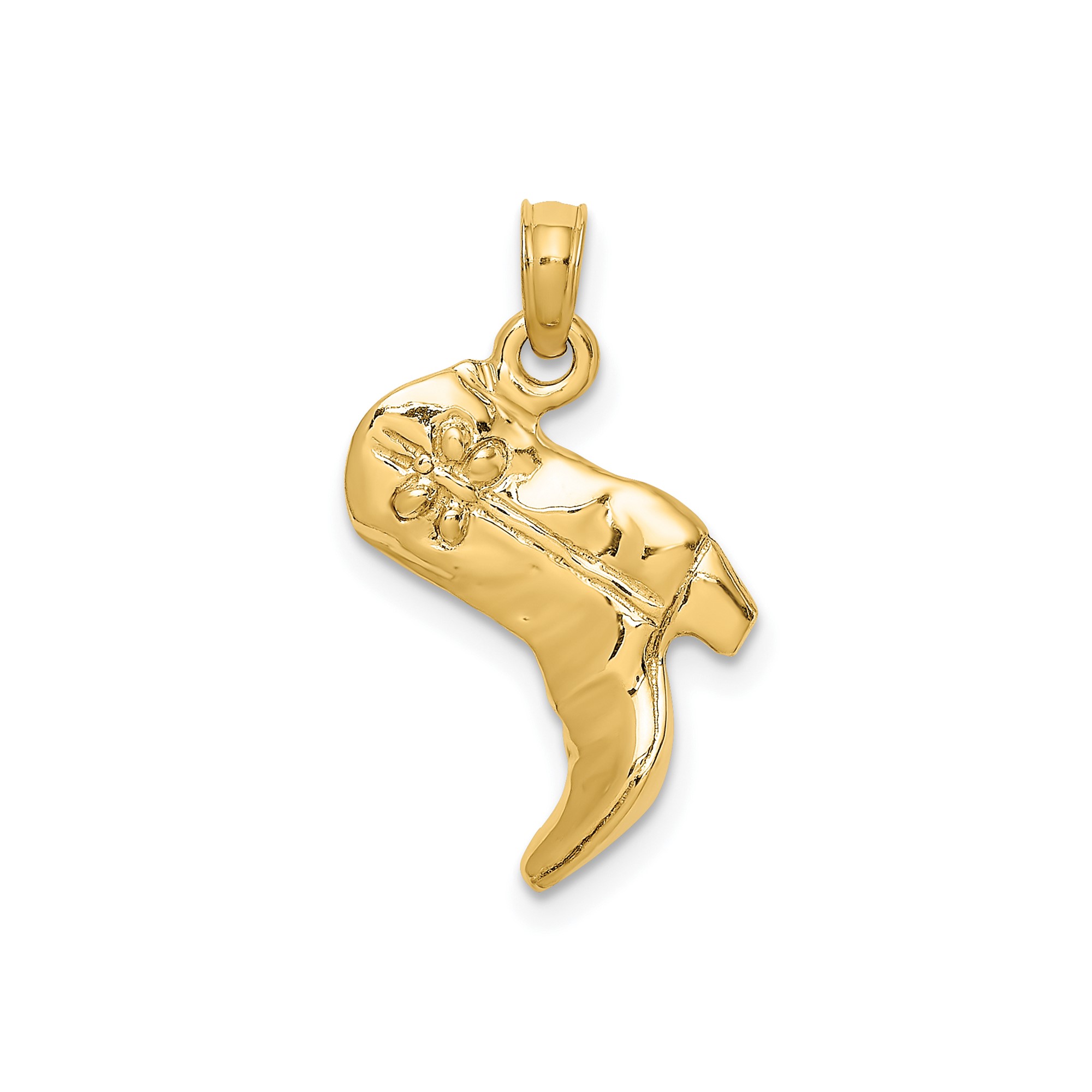 14k Yellow Gold Cowboy Boot Pendant Western Floral Charm for Necklace Bracelet