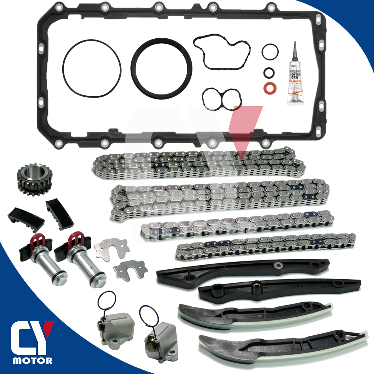 2 Cadena De Distribución / Timing Chains (Primary - Lower)2 Cadena De Distribución / Timing Chains (Secondary - Upper)2 Tensor / Timing Chain Tensioners (Lower)2 Tensor / Timing Chain Tensioners Arms4 Guía / Chain Guide Rails1 Engrane De / Rueda De Espigas / Crank Gear (Double Row)1 Junta Conversión / Conversion / Lower Gasket Set