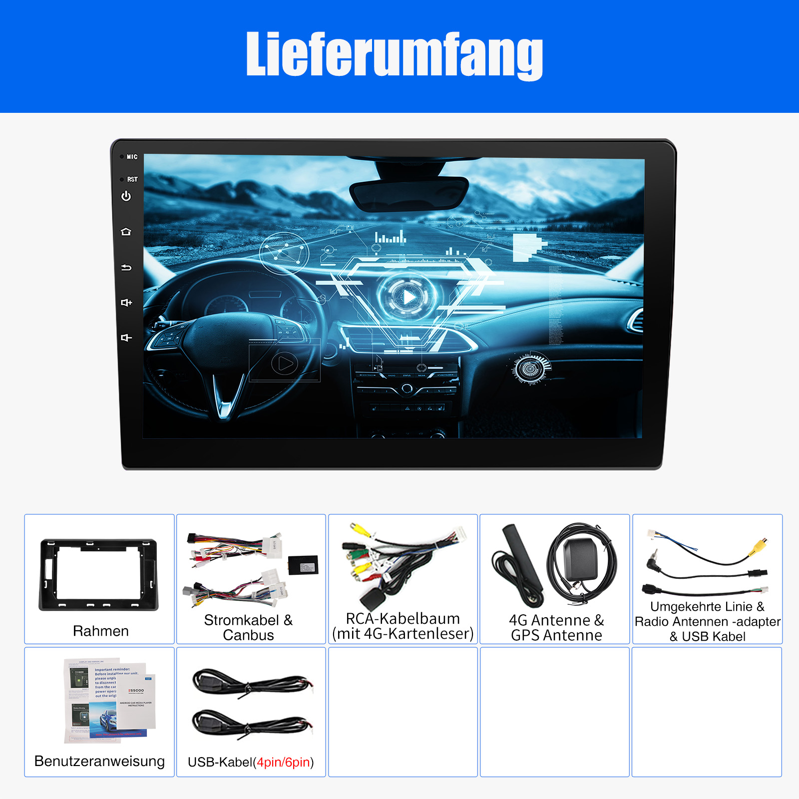 1 x RCA Anschlusskabel(mit 4G-Kartenleser)