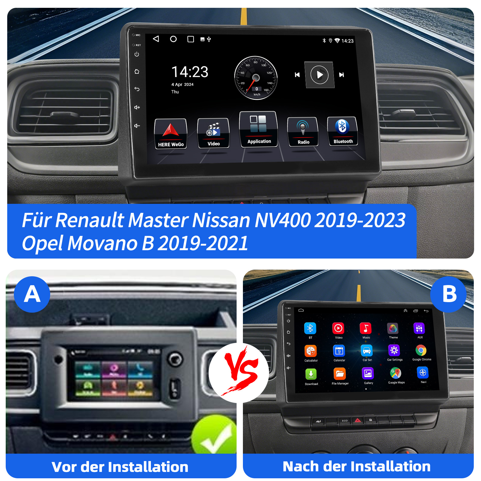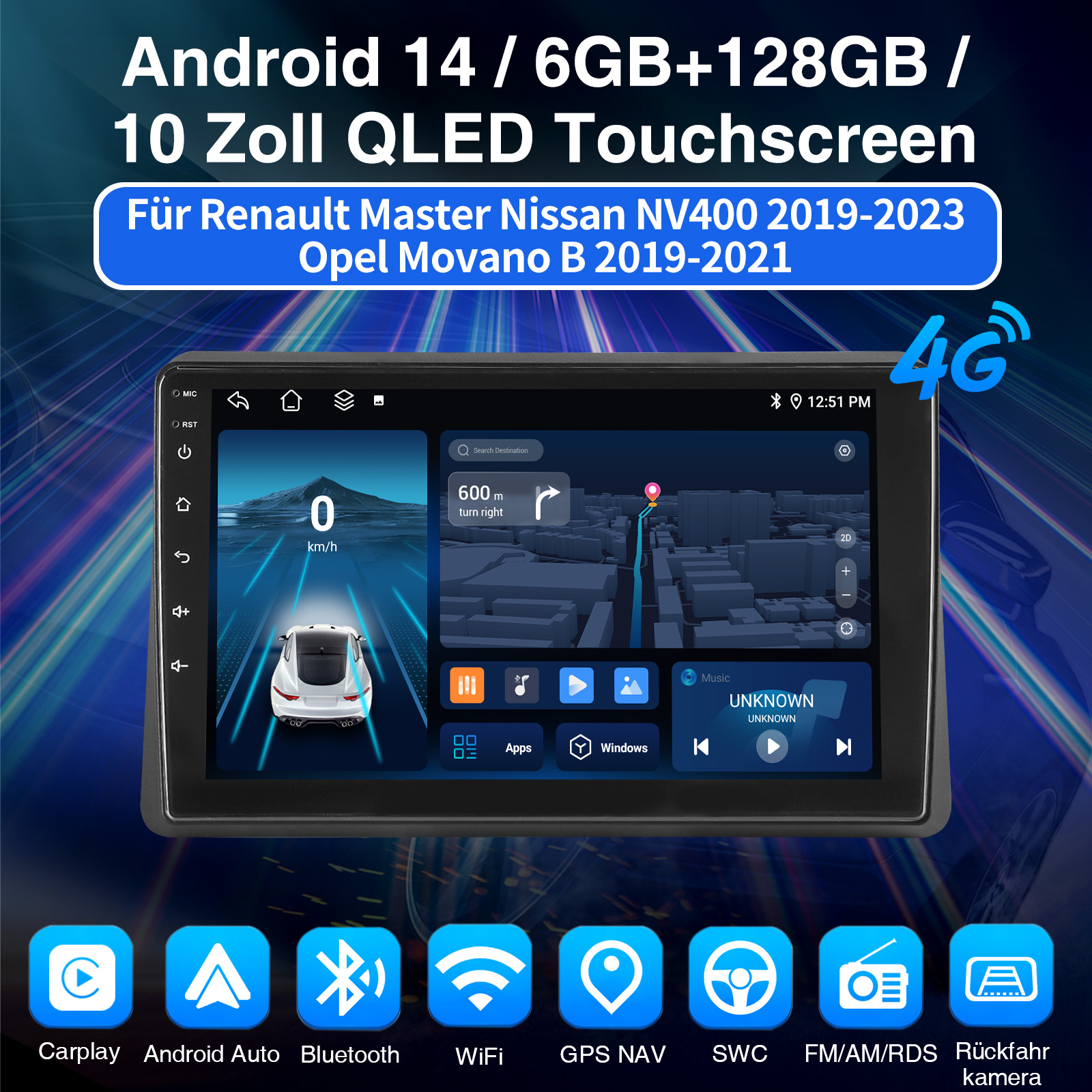10 Zoll Android 14 Autoradio Für Renault Master III Opel Movano B Nissan NV400: Das Android Autoradio mit 10" 1280* 720 HD QLED kapazitivem Touchscreen, 6GB RAM und 128GB ROM ermöglicht das Herunterladen Ihrer Lieblings-Apps und -Videos, damit das Autofahren nicht mehr langweilig wird. Kein zusätzlicher Rahmen, kein Kabelwechsel, Plug and Play.