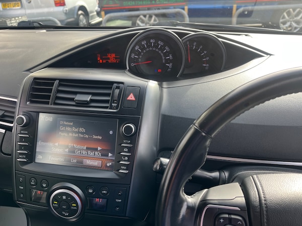 15 months warranty available £35 tax 7 seats Features Include: , 16in alloy wheels, chrome surrounds on front fog lights, door handles - body coloured, door mirrors - body colour - heated and electric, door scuff plates, front grille - chrome plated, front power windows, green tempered glass, piano-black license plate garnish, power retractable door mirrors, rear chrome trim, rear power windows, rear spoiler, rear window defogger, space saver spare wheel, 3-spoke leather steering wheel, audio switches on steering wheel, auto up and down function on power windows, automatic air conditioning, aviation tables, back door release with push button, chrome plated air vents, clean air filter, coat hooks, console box, conversation mirror, driver and front passenger sun visors, driver and passenger seatback pockets, fabric stitching armrest on console box, front and rear assist grips, front and rear door pockets, front and rear personal lamp, hooks for luggage holding belt, intermittent front and rear wipers, leather gear shift knob, luggage room light, manual rear view mirror, manual tilt and telescopic adjustable steering wheel, overhead console, rear armrest, rear headrests, reclining and sliding front seats, seats - drivers height adjustment, separate rear seats, steering wheel - telephone switch, tonneau cover - retractable, upper glovebox with cooler, whiplash injury lessening - wil - seats, analogue speedometer, cruise control, electric power steering - eps, reversing camera, tyre pressure warning system, anti lock braking system - abs with electronic brake-force distribution - ebd, front passenger airbag on-off switch, isofix fixing points, immobiliser, power and remote door locking, seat belt - pre-tensioners and force limiters, supplemental restraint system - srs - airbags - 7 airbags, thatcham approved cat 1 alarm and immobiliser, toyota safety sense, traction control - hill-start assist control - hac and vehicle stability control plus - vsc, automatic high beam, daytime running lights, dusk sensing headlights, follow me home headlights, front fog lights, high mounted rear brake light - led, led rear combination lights, manual headlight levelling, multi-reflector halogen headlights, bluetooth connectivity, dab digital radio, front 12v power outlet, rear 12v power outlet, roof antenna, speakers x6, toyota touch 2, usb connector