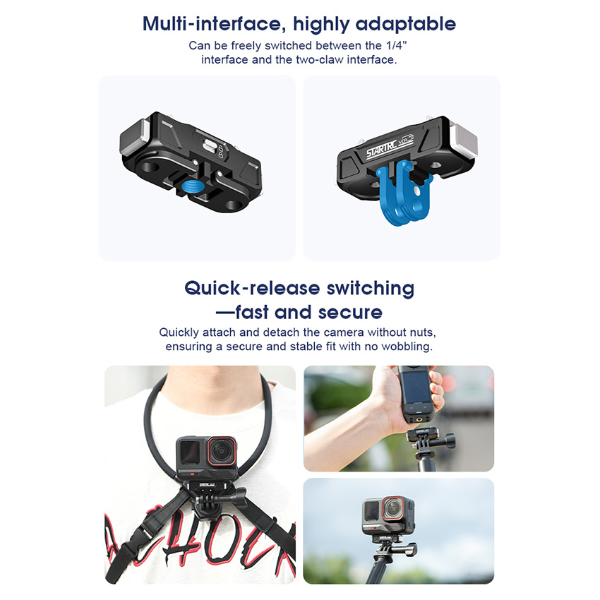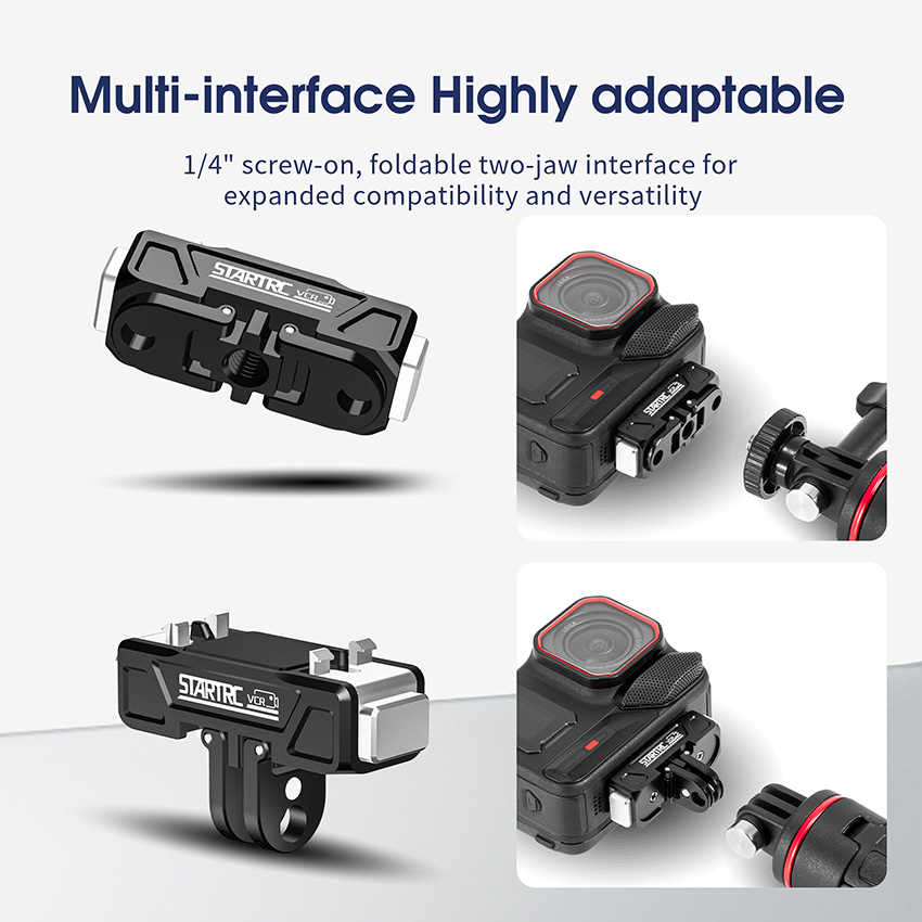 l Multi-purpose interface with precision-engineered 1/4" universal mount at the base, compatible with panoramic cameras, action cameras, tripods, and more for limitless creative possibilities