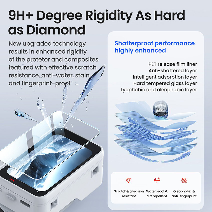 l Newly upgraded technology reinforces the glass fiber layer for powerful, efficient explosion protection while effectively preventing scratches, abrasions, and wear. Also waterproof, stain-resistant, and fingerprint-repellent