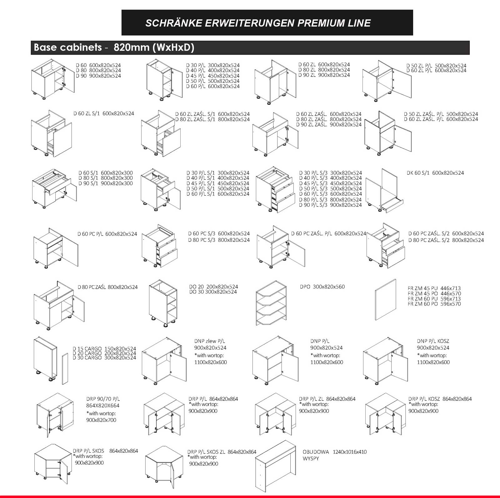 - Unterschrank D 60 P/L / 2133 -( B x H x T-60,0 x 82,0 x 52,4 cm)-3St.