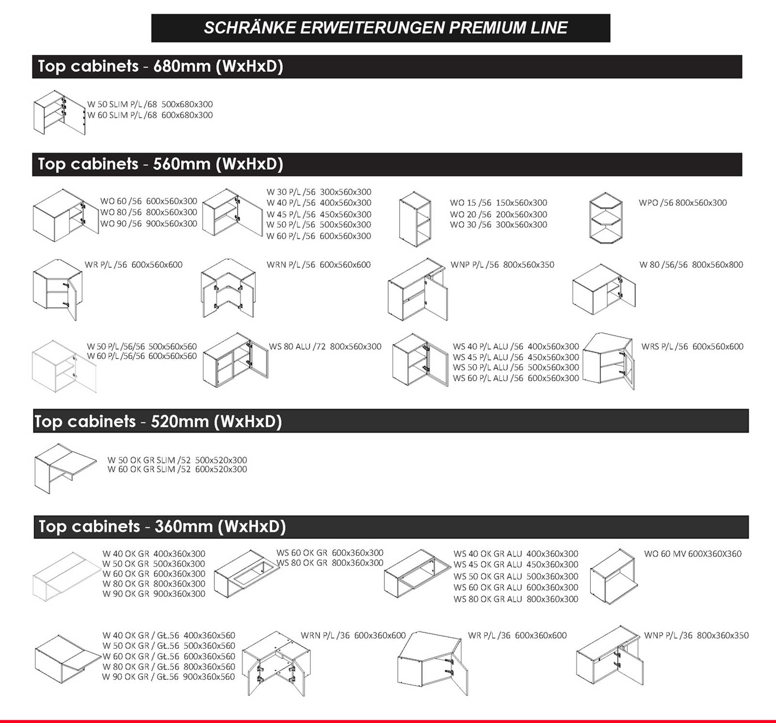 - Hängeschrank w60KGR ALU SCHWARZ-(B x H x T- 60,0 x 36,0 x 28,8 cm)-4St.