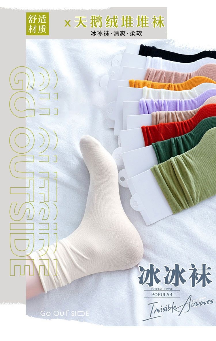 * Item:2PC Women's Socks Spring Japanese Style Pile Up Medium Tube Solid Color Socks