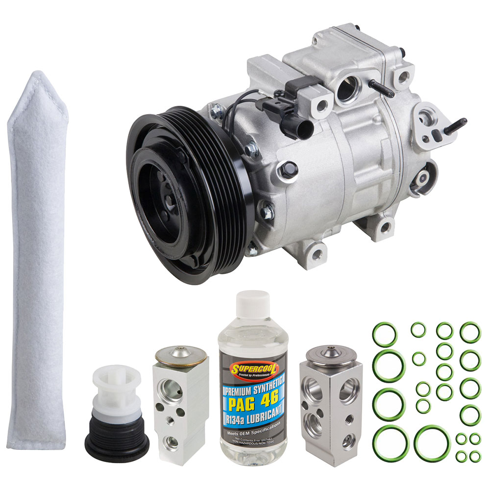 This 5 piece Premium Installers AC Kit includes an OEM new AC compressor, accumulator/drier, expansion device, a bottle of AC compressor oil and a pack of the correct o-rings for your system to prevent leaks. This kit is designed to include all of the right parts to make the repair process easier and save you money.