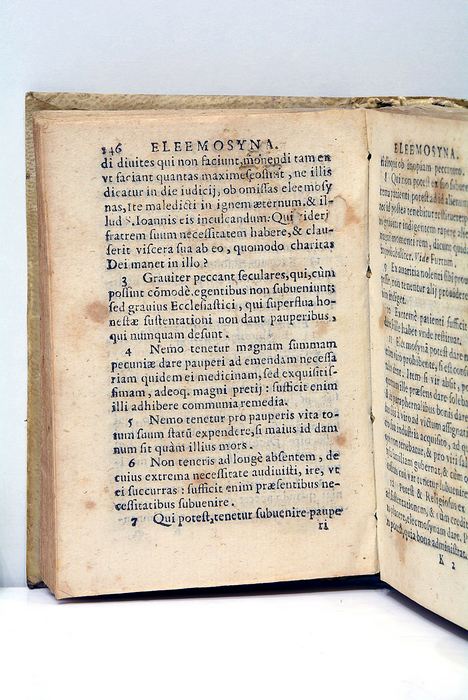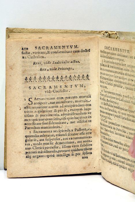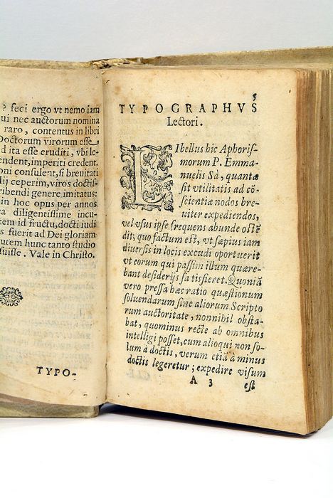 Publié à Rome en 1601, cet ouvrage de SA (Manuel de) se présente comme une collection d'aphorismes destinés aux confesseurs, compilés à partir des opinions de divers docteurs de l'Église. À une époque marquée par la Contre-Réforme et le besoin de réaffirmer les pratiques catholiques face aux défis posés par la Réforme protestante, ce manuel s'inscrit dans un mouvement plus large de consolidation de la doctrine et de la discipline ecclésiastique.Fortes rousseurs. Travail de vers sur quelques feuillets sans impact sur le texte. Papier bruni.