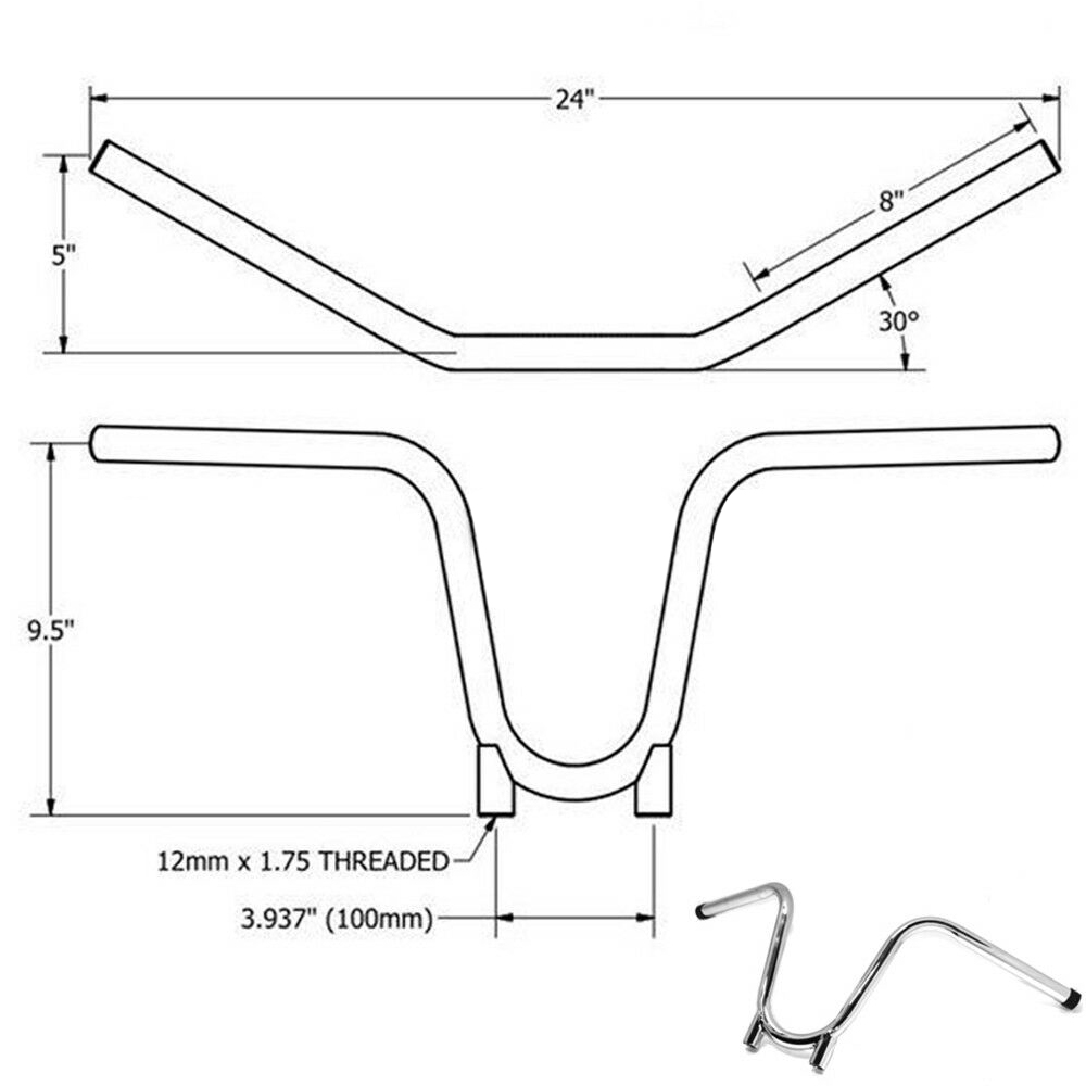 Arttibutes: All joints are precision fit and hand TIG welded. The unique, 3-bend design is produced on a CNC mandrel bender for high quality and flawless symmetry. These bars feature a high quality finish for durability and great looks. These bars are narrow, unique, and comfortable for the long rides. These bars fit stock cables, brake lines, and wiring on most motorcycles. Specifics: 9.5" of rise sufficient pullback 24" overall width Made from 7/8 inch OD x 0.095" wall premium steel tubing. The bungs on the bottom are internally threaded to accept metric M12x1.75 mounting bolts. Designed to fit stock or aftermarket metric triple trees with removable risers that are 100mm (3.937") center to center spacing. (The 100mm riser spacing is commonly found on metric motorcycles including Yamaha XS650 models.) The riserless design of this handlebar allows to mount directly to the stock 12mm (0.472") diameter holes in the top of the triple tree, making for a very clean install. Fitment: For 7/8" XS650 Bootlegger Handlebars chopper bobber hardtail yamaha tx650 About us We are a factory specializing in the production of various motorcycle accessories Because there are too many products, we can't upload them all If you have any needs, you can ask us at any time The team leader or dealer is welcome to consult The parts you can't find can be found here. The parts you can find elsewhere will be cheaper here We also support small batch customization. It will be cool to add your own name or logo Finally, let's enjoy the fun brought by the locomotive~