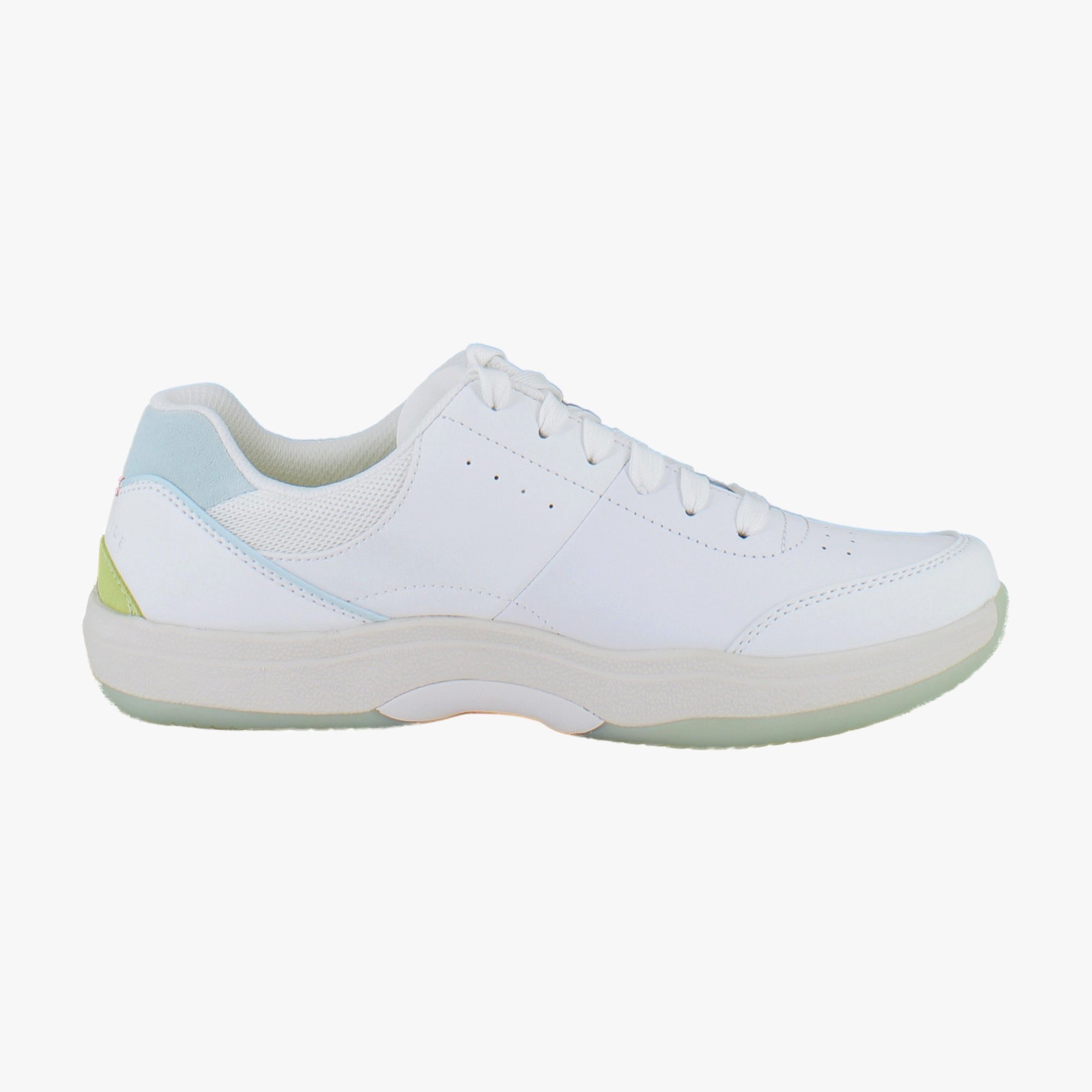 Lace up in the Ryka Courtside, a women's athletic shoe engineered for court sports. With a design that embraces the unique shape and movement of a woman's foot, this shoe offers a balance of comfort, support, and stability. Its lightweight structure and breathable material make it an ideal choice for activities that require agility and quick lateral movements.