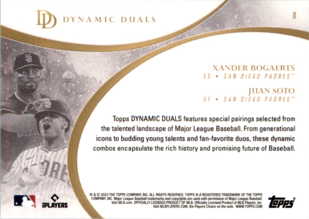 | Xander Bogaerts/Juan Soto 2023 Topps Dynamic Duals #8 San Diego Padres |