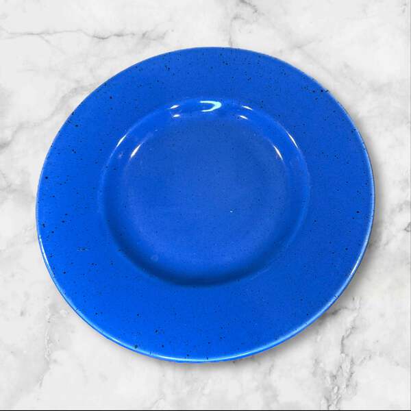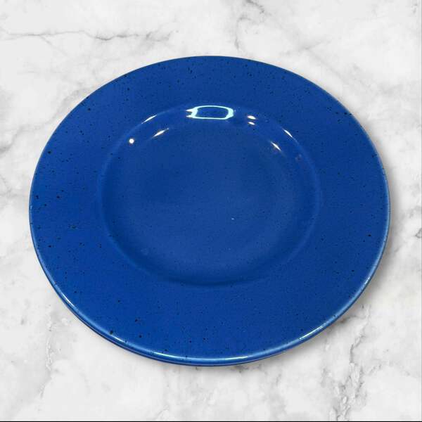 Bring bold, modern color to your dining table with these deep blue Century Stoneware dinner plates. Speckled with a rich glaze, they blend durability with style.