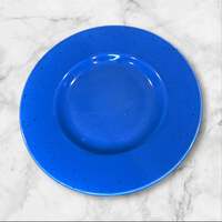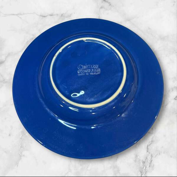 Bring bold, modern color to your dining table with these deep blue Century Stoneware dinner plates. Speckled with a rich glaze, they blend durability with style.•Material: Stoneware•Size: 11 1/8 inches•Collection: Century Stoneware•What’s Included: 3 Dinner Plates•Country of Origin: Thailand•Condition: Good condition, minor utensil marks