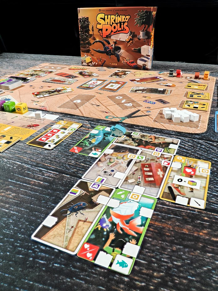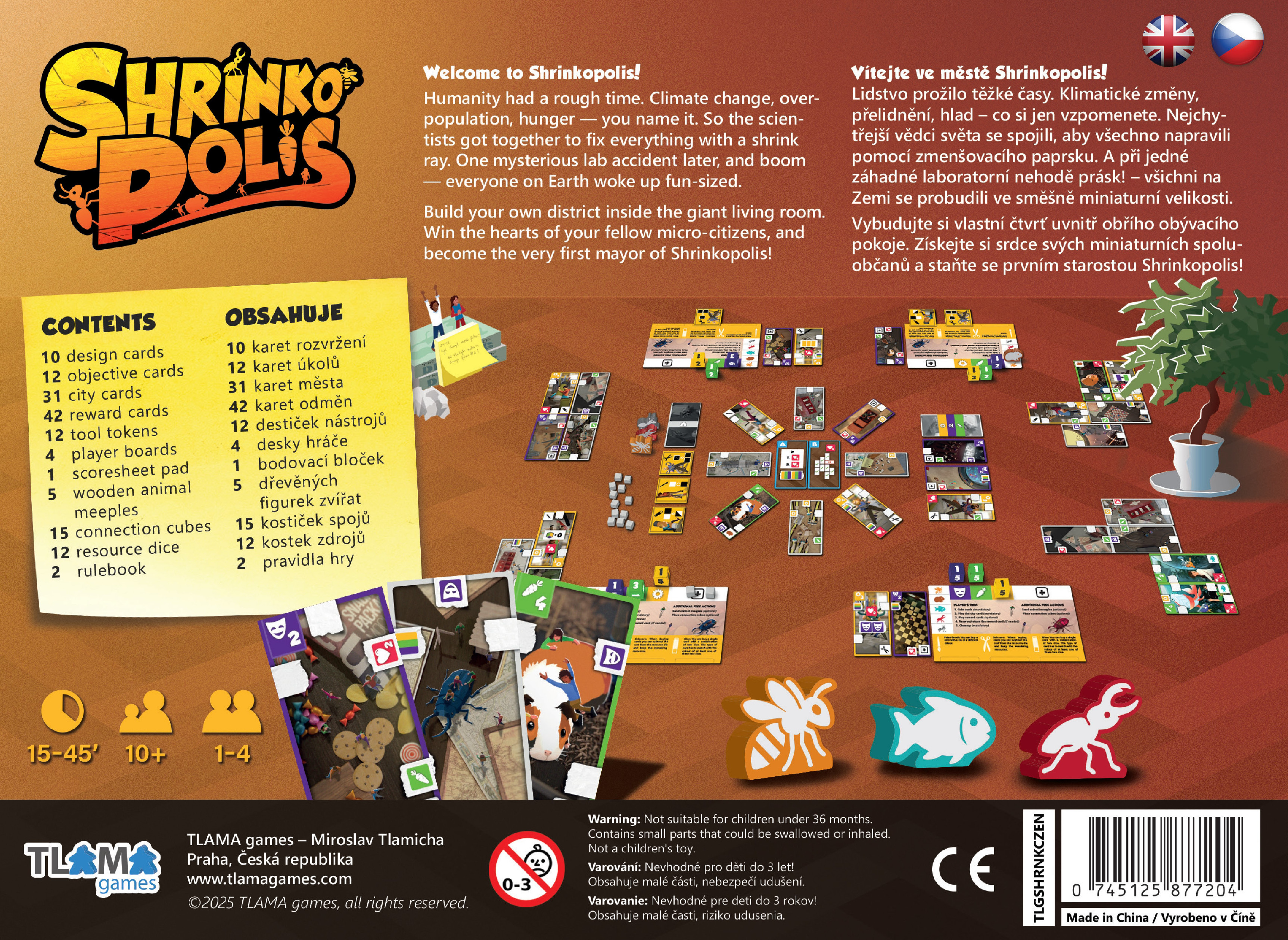 Each player will build their own district inside the great living room. Win the hearts of your fellow micro-citizens, and you’ll be crowned the very first mayor of Shrinkopolis.